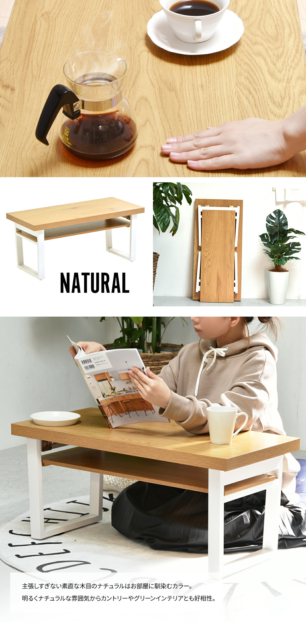 木目調が美しいFACILEシリーズから使いやすい折りたたみのローテーブルが登場しました。