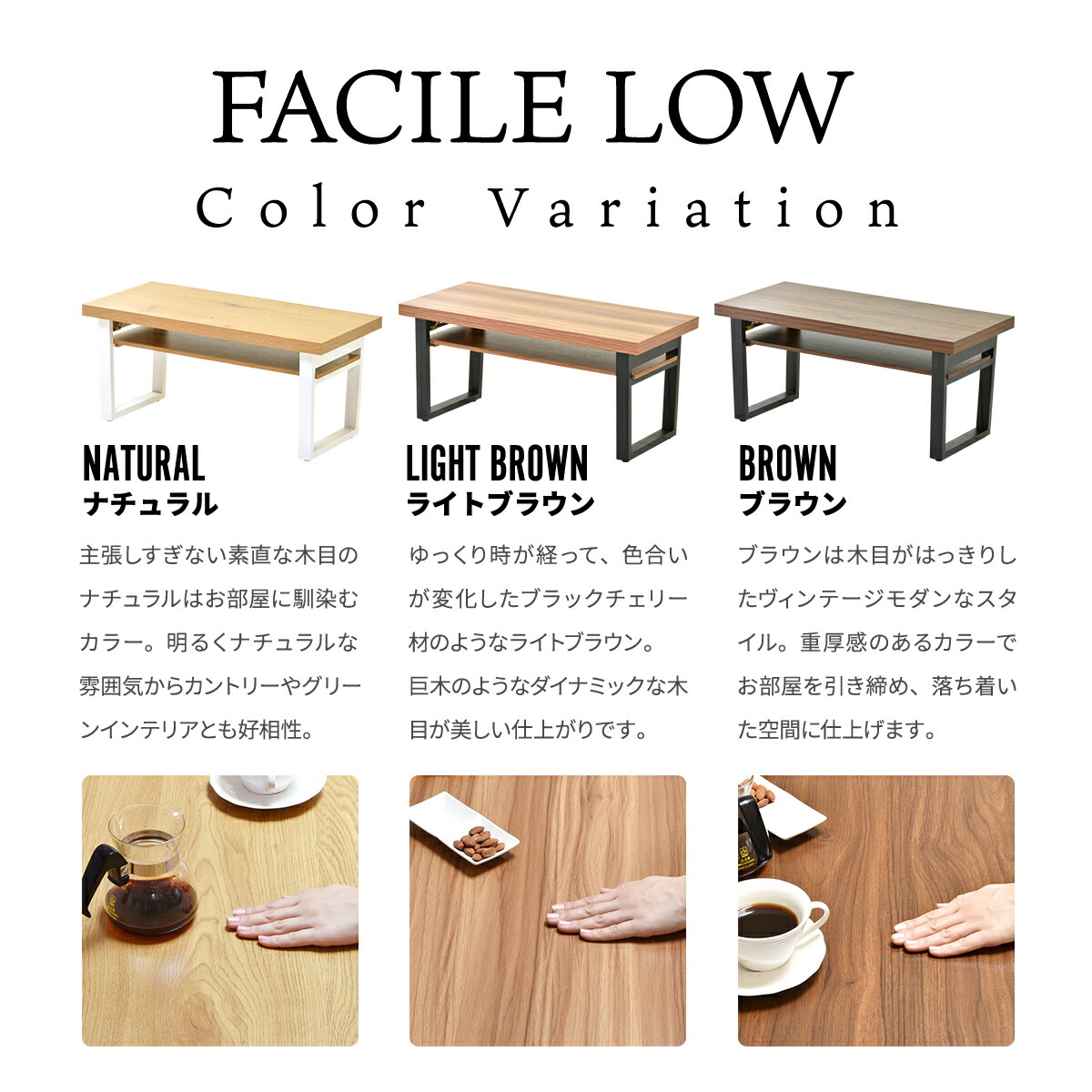 テーブル 折りたたみ おしゃれ センタ 【在庫】FACILE LOW ブラウン 【在庫】FACILE LOW Lブラウン 【在庫】FACILE LOW ナチュラル