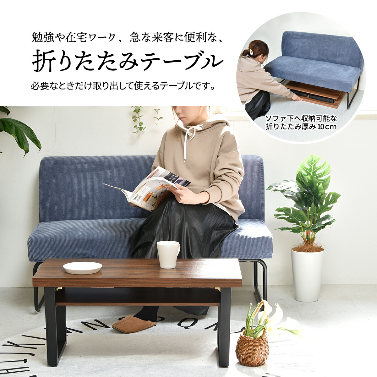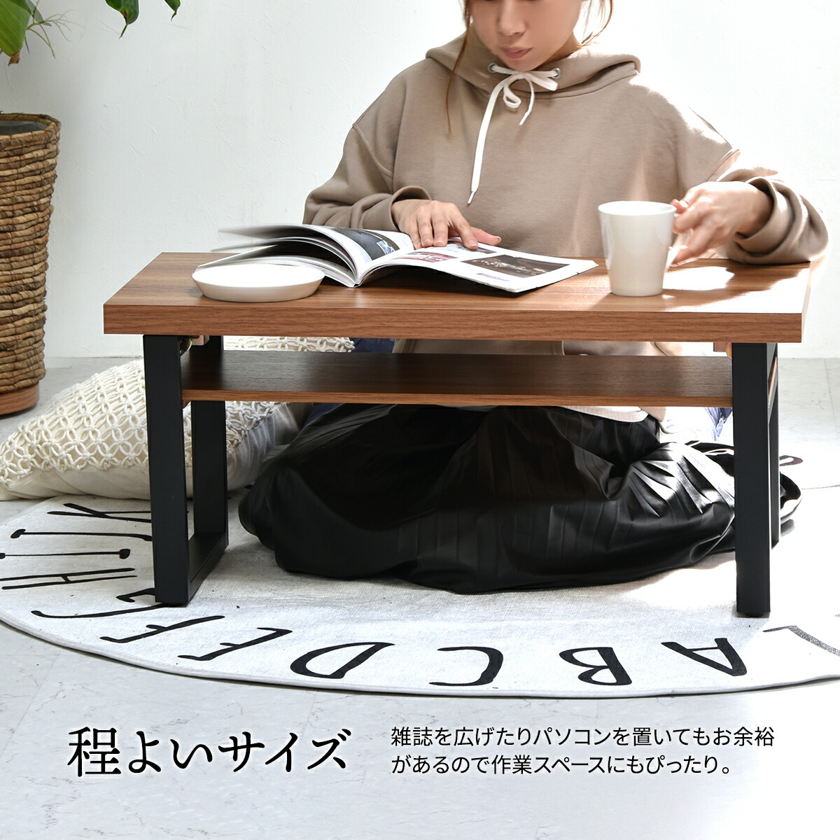 床に座って食事や学習、ソファに座ってコーヒーテーブルに、と、ひとつあればマルチに使えます。