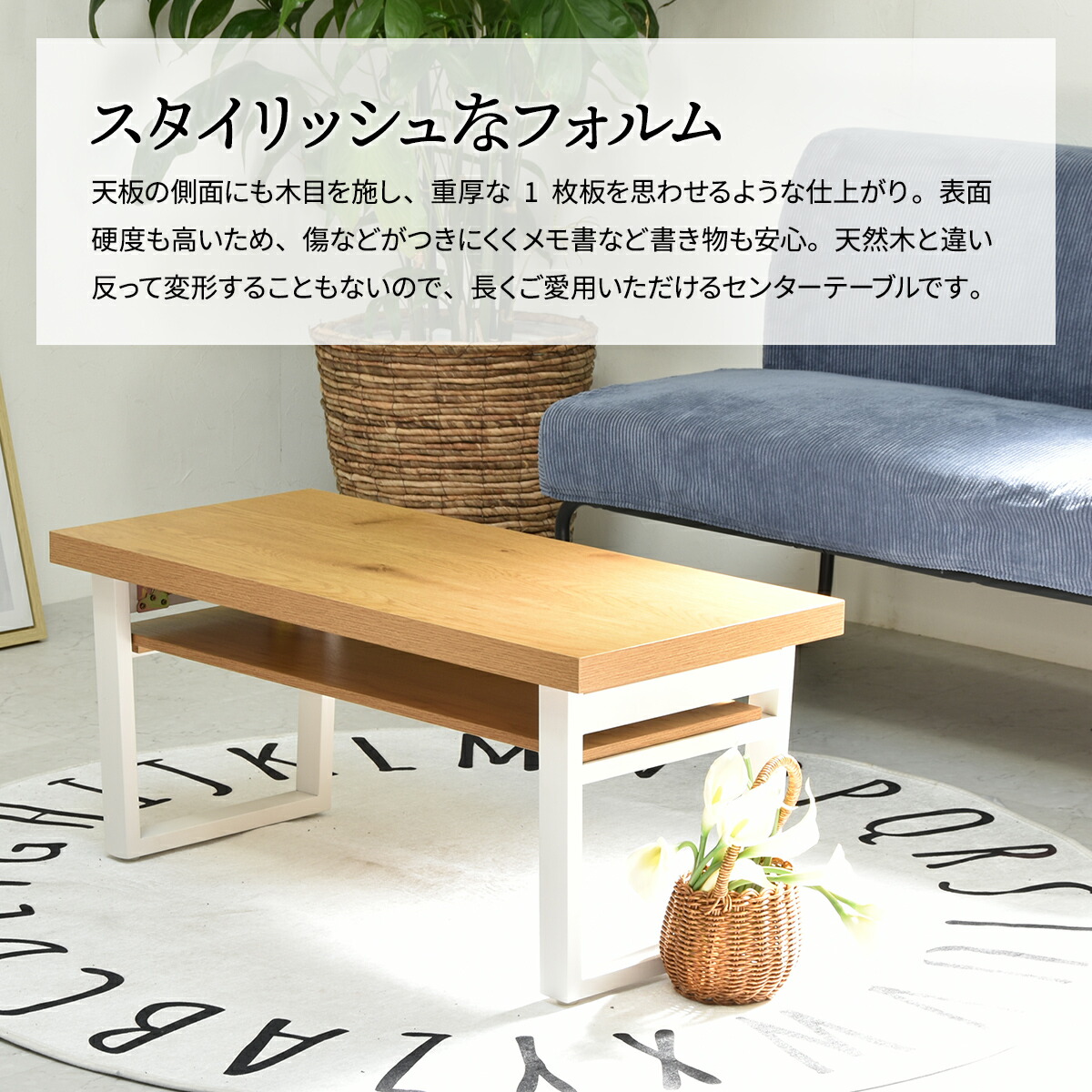 表面硬度も高いため、傷などがつきにくくメモ書など書き物も安心。天然木と違い反って変形することもないので、長くご愛用いただけるセンターテーブルです。