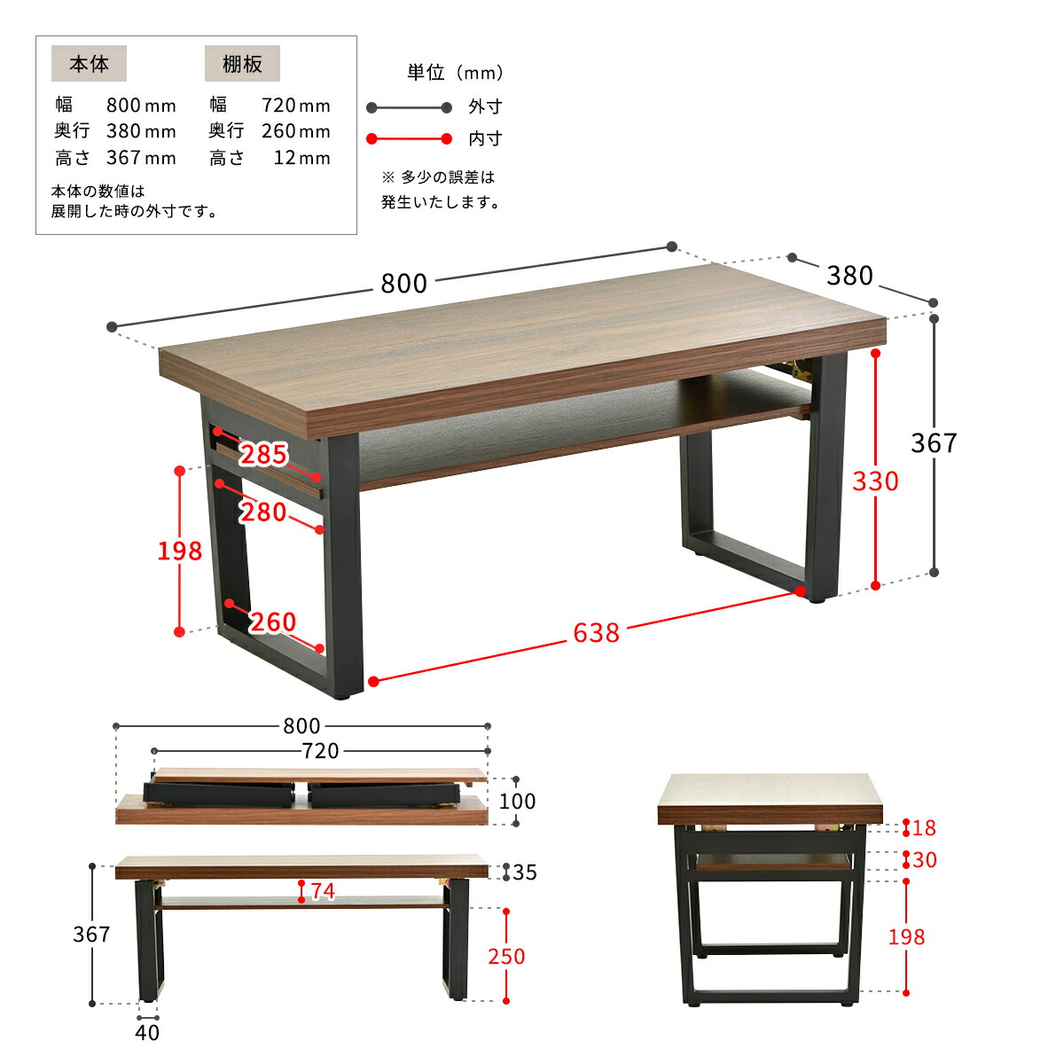 W800×D380×H370mm
