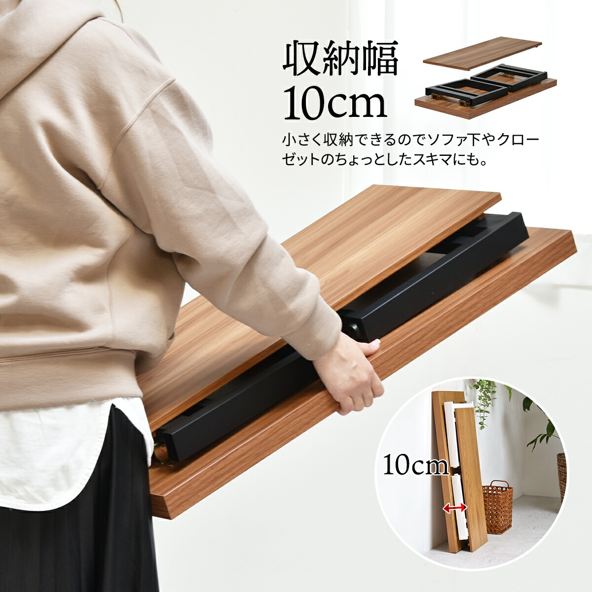 収納幅10cmだからベッドやソファの下にも収納可能。