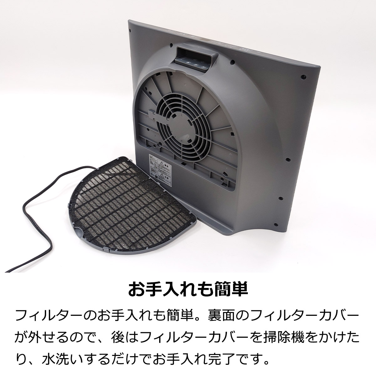 フィルターのお手入れも簡単。裏面のフィルターカバーが外せるので、後はフィルターカバーを掃除機をかけたり、水洗いするだけでお手入れ完了です。