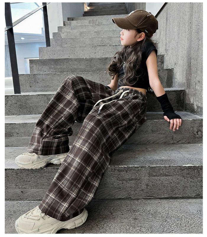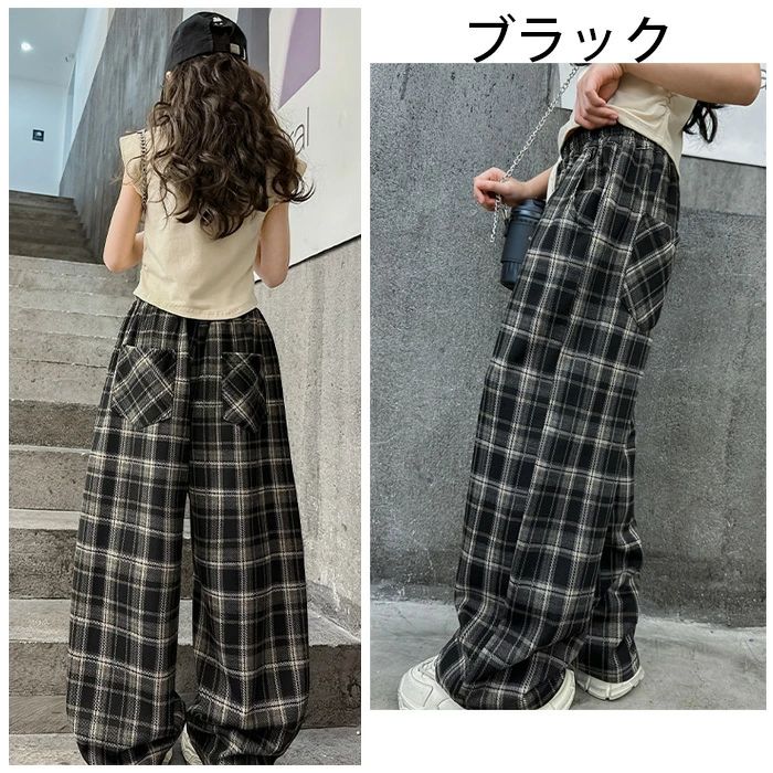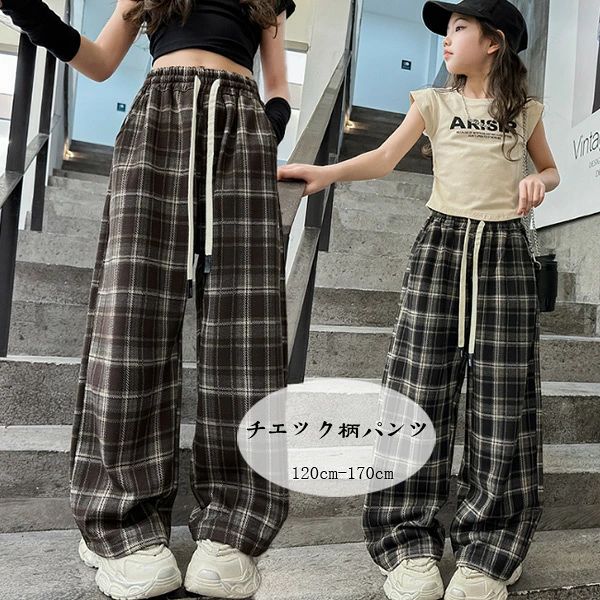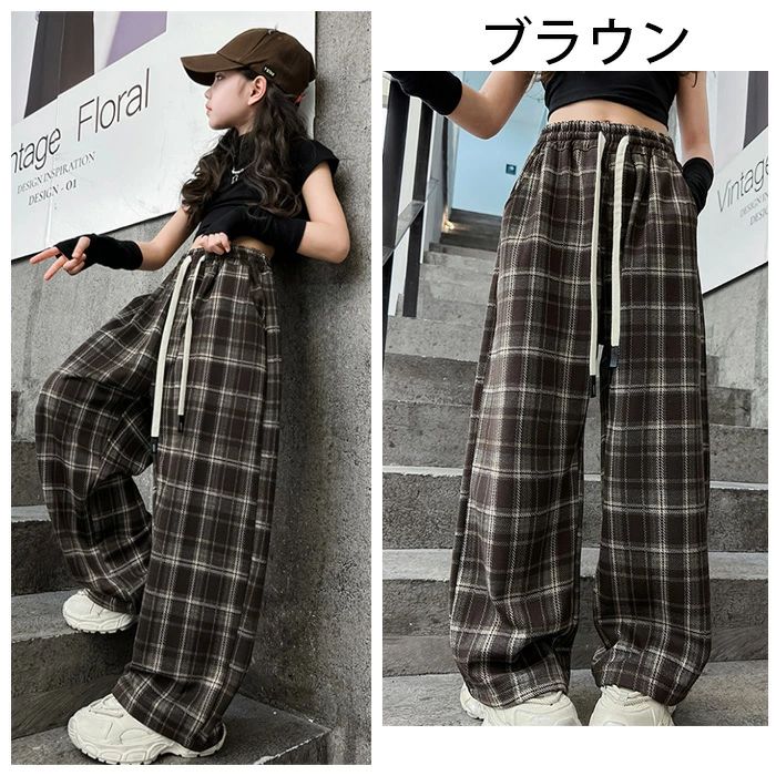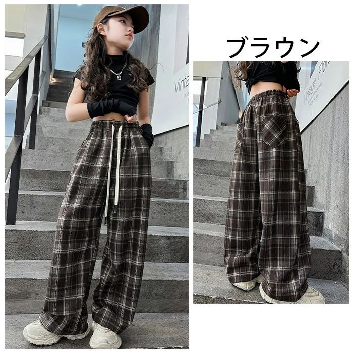 子供服 ワイドパンツ 女の子 チェック キッズ ベビー マタニティ 新作 ブラウン ブラック 120 130 140 150 160 170