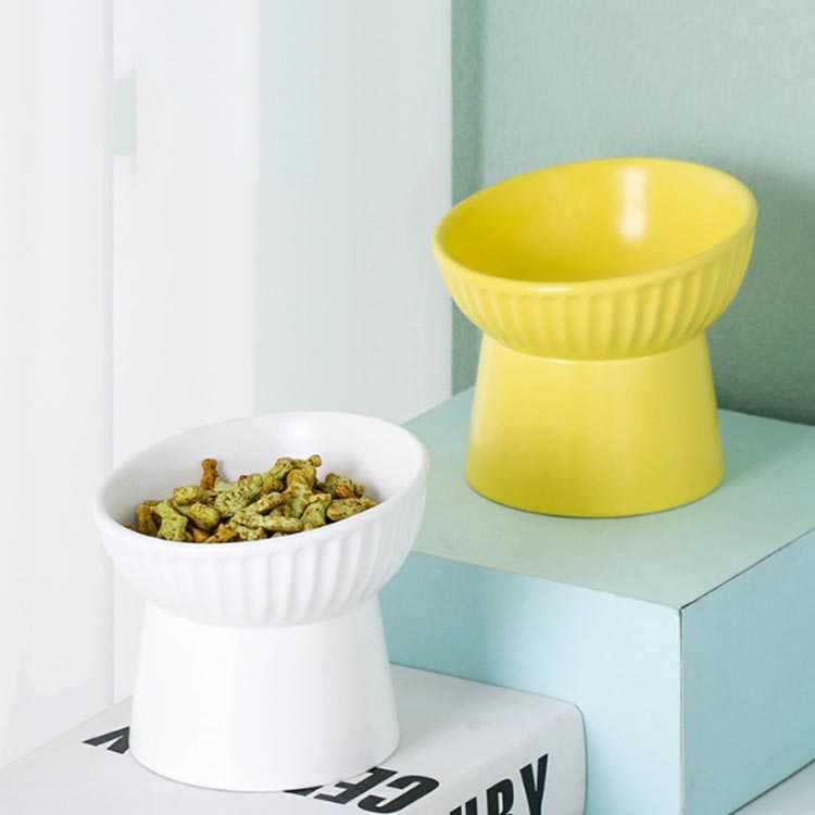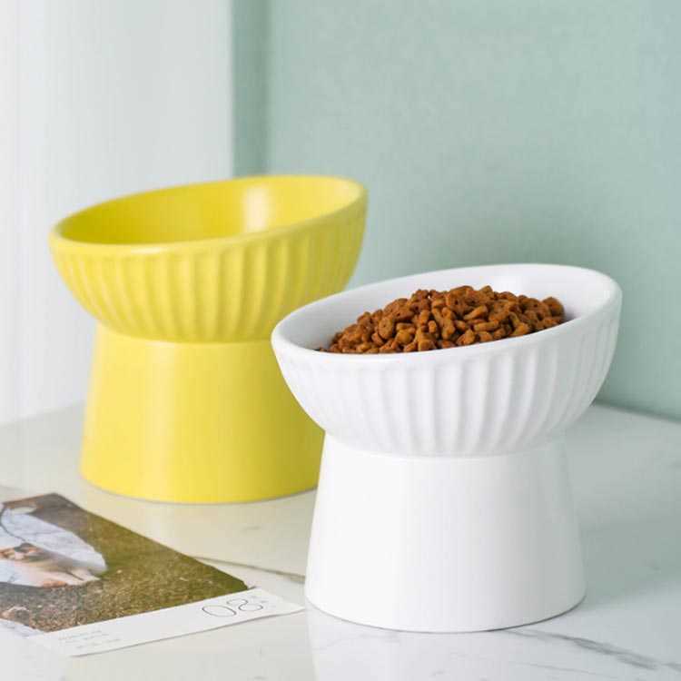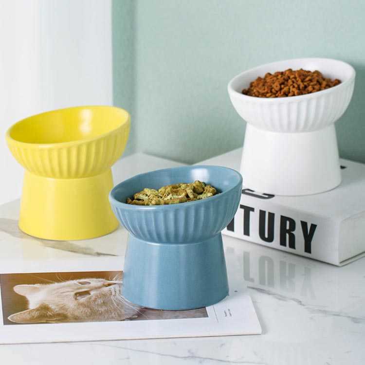 猫食器 食べやすい 陶器ボウル 傾斜角 イエロー ブルー ホワイト 傾斜 平だ