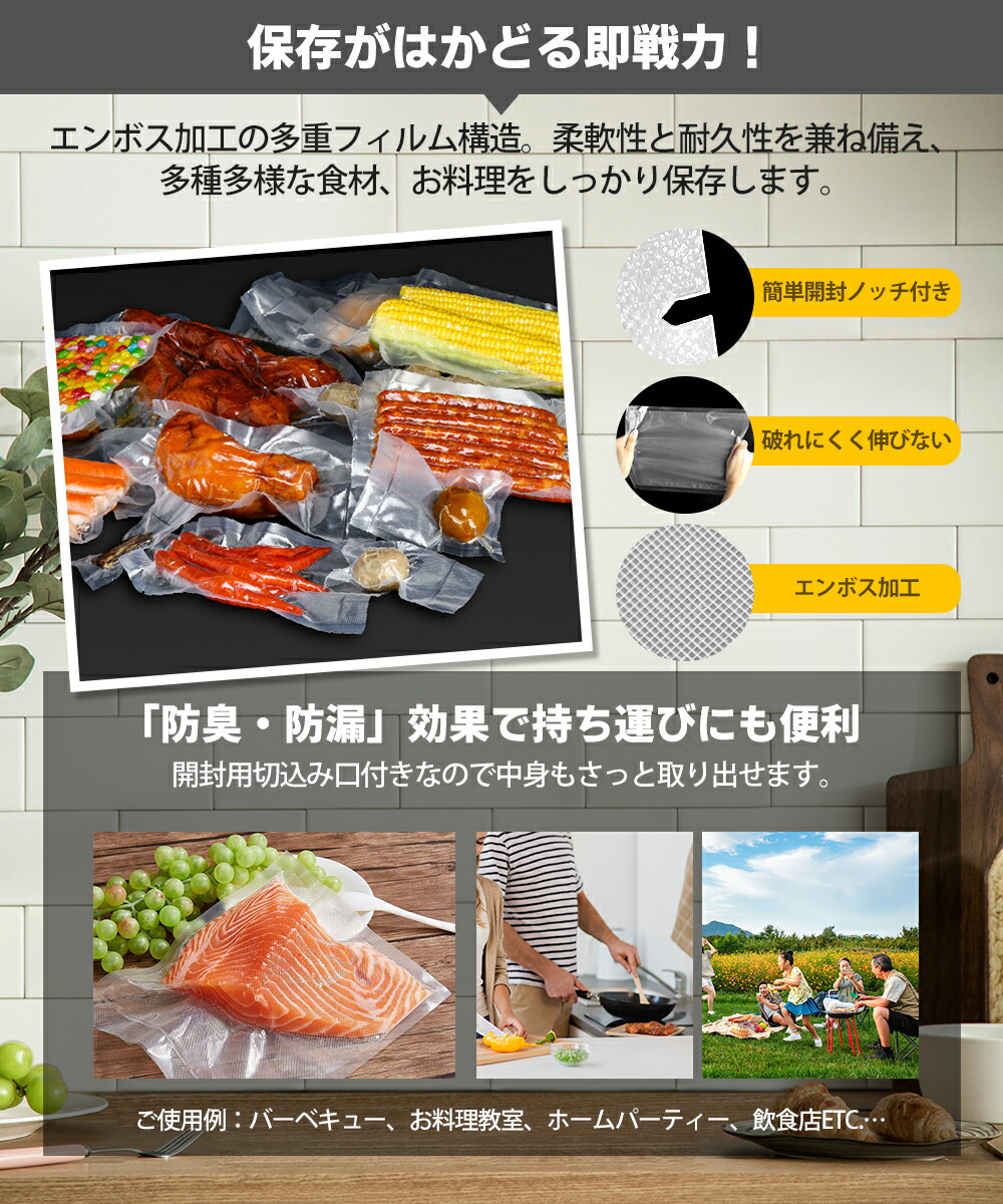 真空パック 袋 エンボス加工 真空パッ 20cm*30cm 17cm*25cm 15cm*20cm 28cm*35cm 30個セット 50個セット 60個セット 90個セット 100個セット 120個セット 150個セット 200個セット