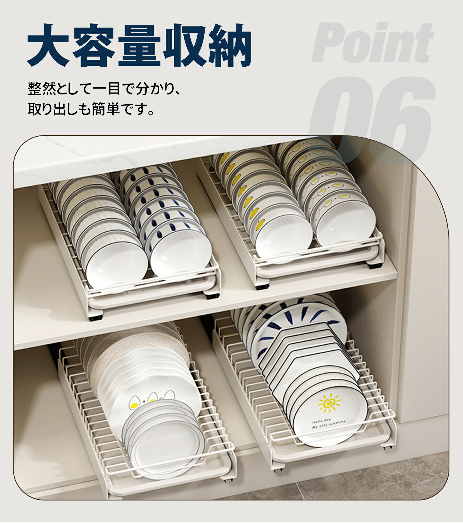 奥行きがあるので、食器をコンパクトに収納できてキッチンをすっきりと整理できます。