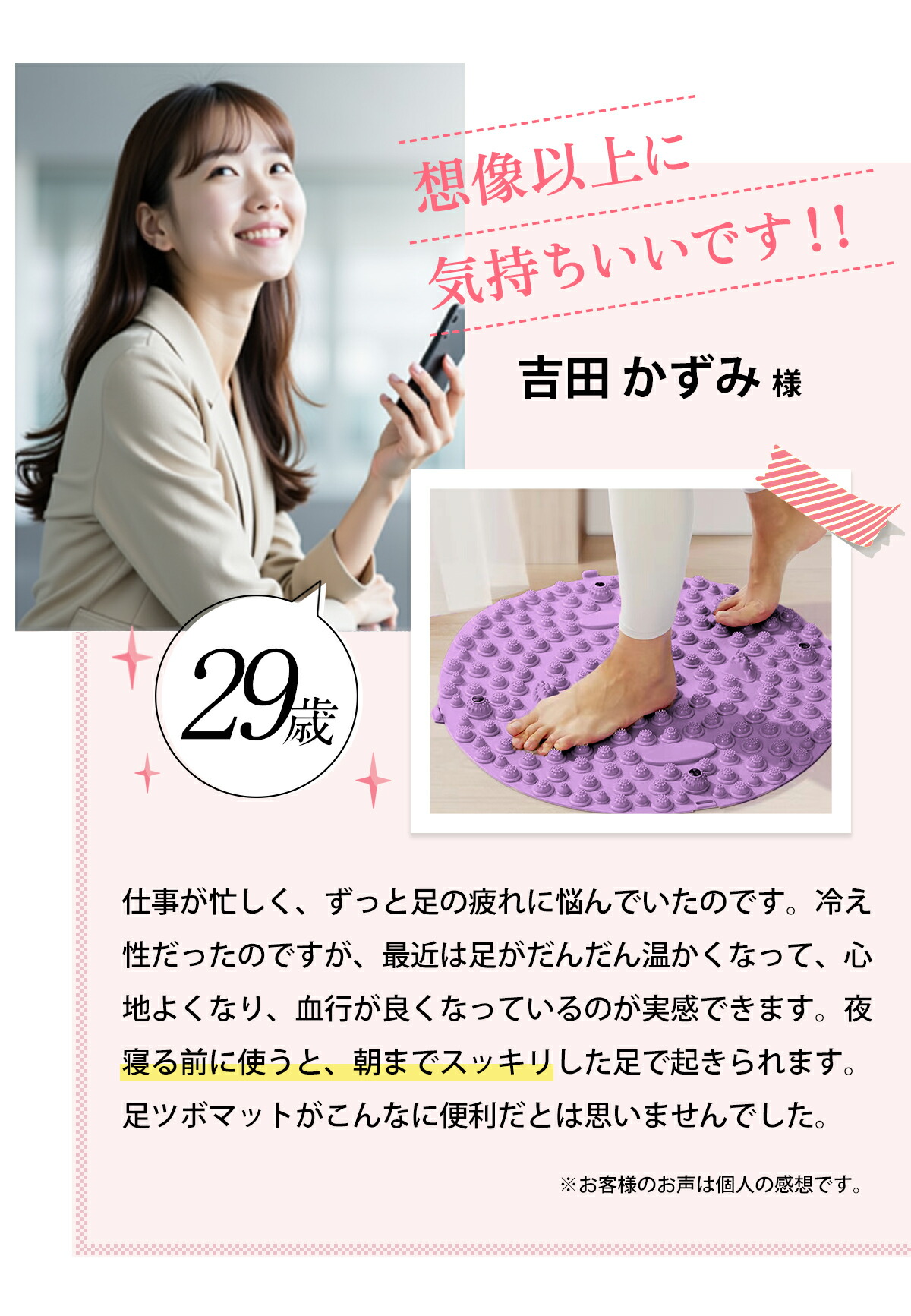 長時間ハイヒールを履く人、長時間の歩行後や立ち仕事におすすめ。痛気持ちいい感覚できて、リフレッシュをしたいときや眠気覚ましにも最適!
