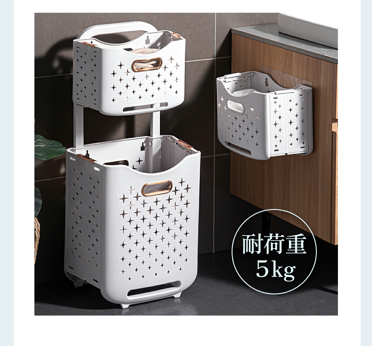 ランドリーバスケット 折りたたみ 洗濯カゴ キャスター 2段 スリム 洗濯物入れ 大容量 壁掛け 耐荷重5kg 大きめ メッシュ 縦型 ランドリー収納 おしゃれ お風呂 新生活 収納用品 洗面所