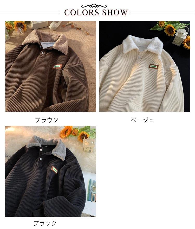 メンズ スウェット コーデュロイ 裏起 トップス スウェット トレーナー 新作 ベージュ ブラウン ブラック M L XL