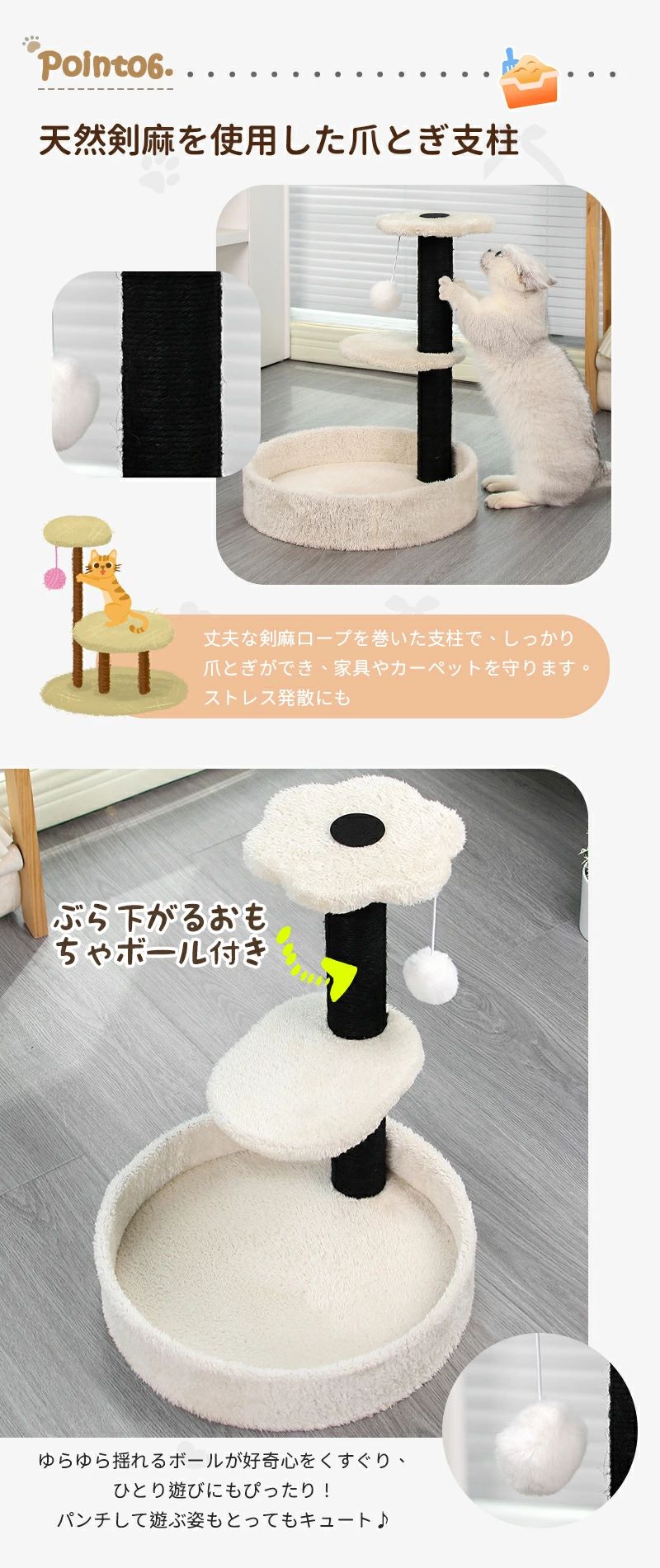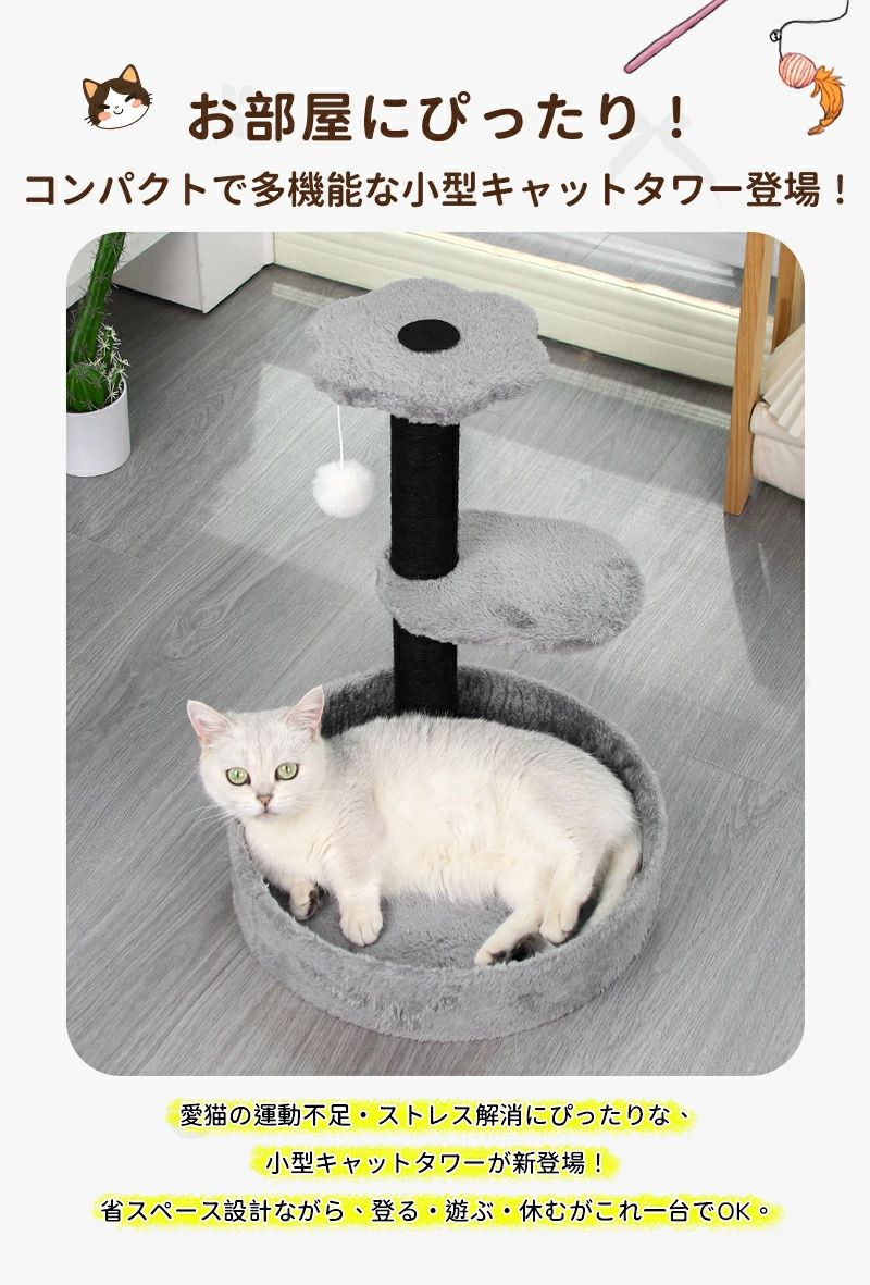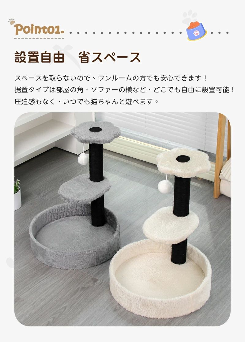 キャットタワー 省スペース 据え置き型 猫用品 キャットタワー 続々登場 ホワイト グレー