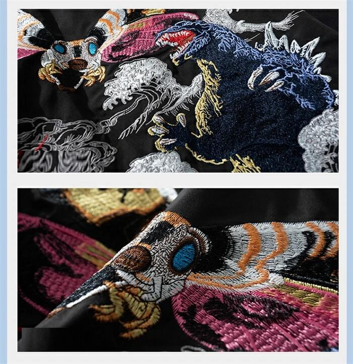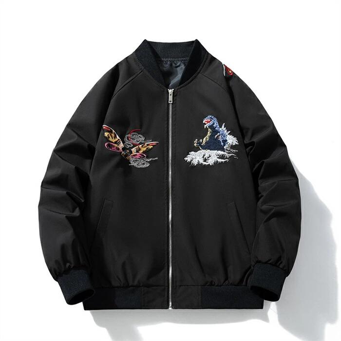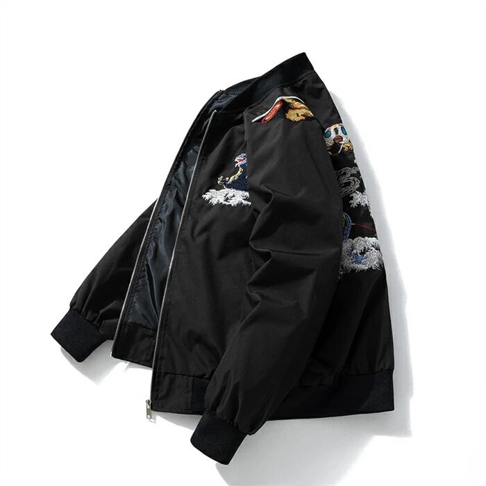 リバーシブル 大きいサイズ 刺繍 サテン 春秋冬 ジャンバー 黒 メンズ ウルフ サ 和柄 光沢 アウター ブルゾン サテンジャケット