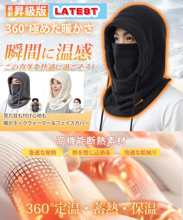 大きいサイズ 目出し帽 ネックカバー 秋冬用 防寒 帽子 フェイスガード フードウォーマー フェイスカバー ヘルメット対応 360°