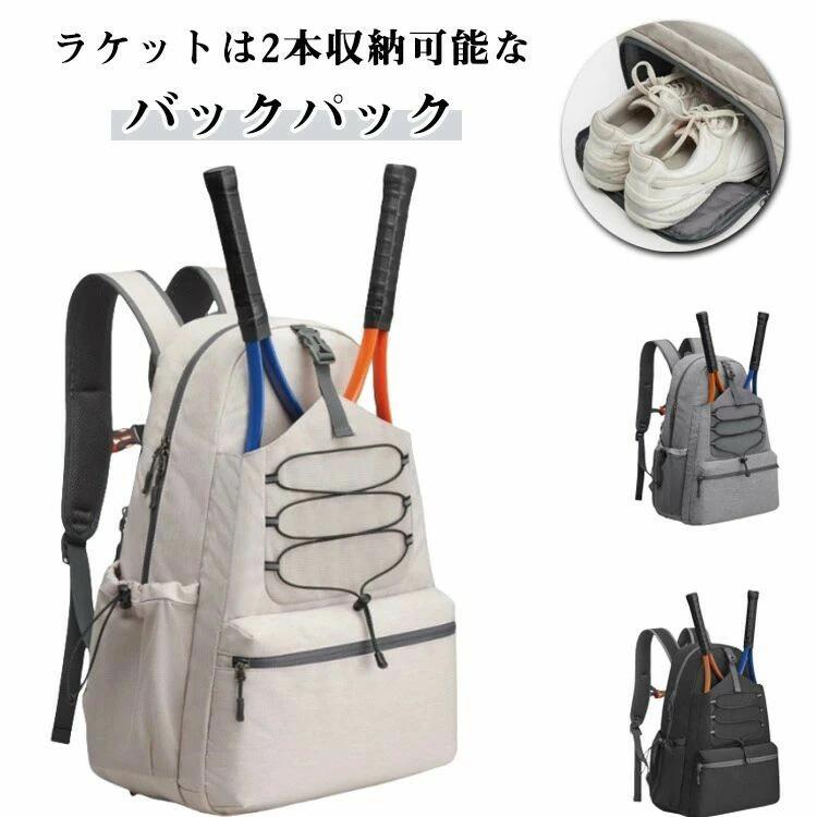 テニスバック リュック テニスラケットバッグ ラケット2本収納可 大容量 バックパック シューズ入れ テニス ラ