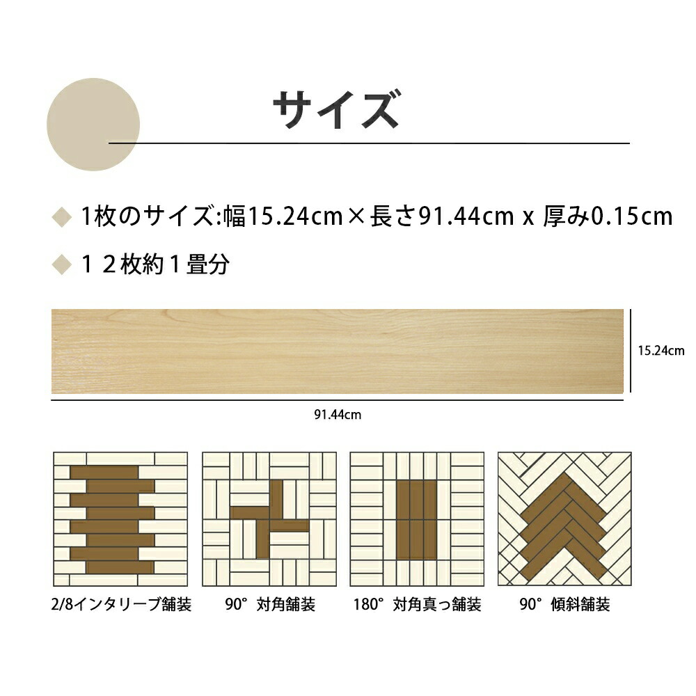 ※強い粘着のため剥がす時接着剤が多少残す可能性があります。回復希望や賃貸の方は貼る前にCFシートや養生テープなどを床に貼ってからフロアタイルを貼ってください。回復する必要がある場合はぜひご検討の上お買い求めくださいませ!