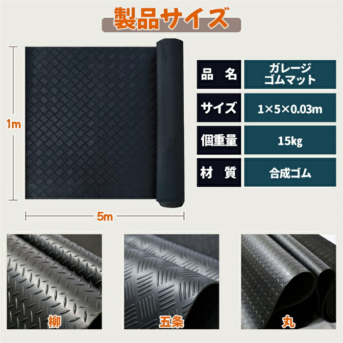 ゴムマット マット 屋外 歩行マット 長さ5m ×1m ×3mm 屋外用ドアマット 室内 業務用 転倒 防止 水切り 玄関 通路 車 スロープ 階段 廊下 学校 店舗 店 お風呂 浴室 ベランダ 介護