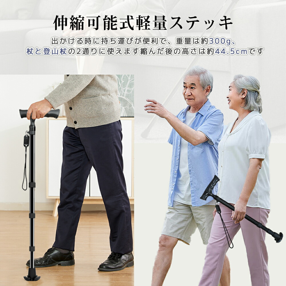 ステッキ 杖 軽量 つえ 3点杖 自立 1本 2本