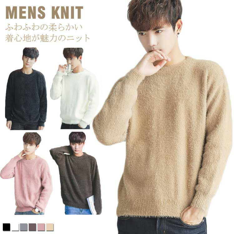 モヘア風 セーター メンズ モヘアタッ メンズファッション 豊富 ブラック ホワイト グレー M L XL 2XL