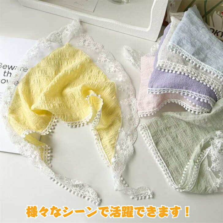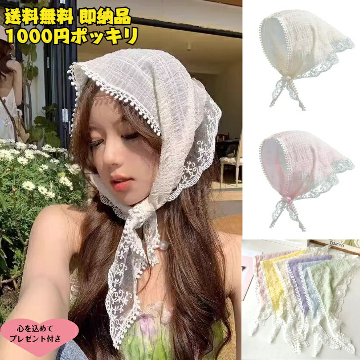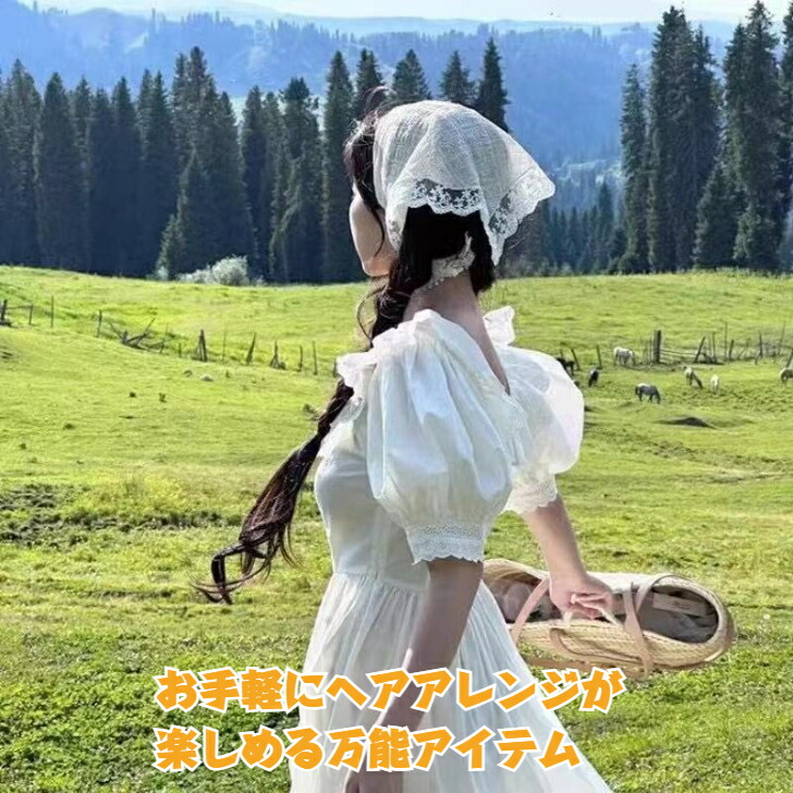 ポッキリ バブーシュ 三角巾 レース シアー バンダナ スカーフ 髪飾り 髪アクセサリー 軽いヘアバンド レース生地 おまけ付き ワイルドカチューシャ ピクニック 日焼け防止