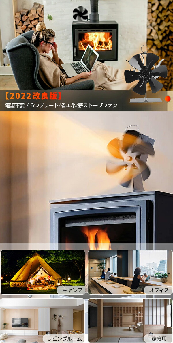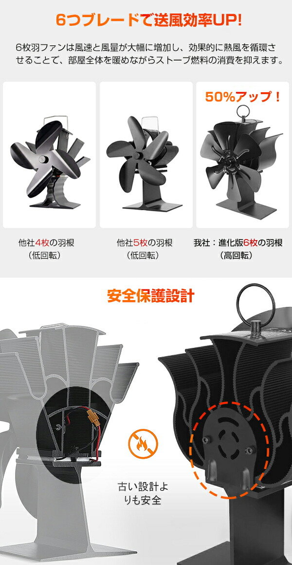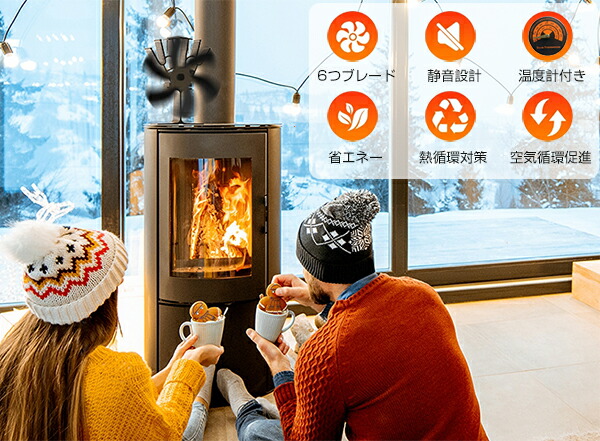 ストーブファン 火力ファン エコファン ゼーベック 火力熱炉ファン 6枚羽根 6つブレード 省エネ 薪ストーブファン 石油ファンヒーター 暖炉ファン 空気循環 寒さ対策 キャンプ エコストー 電源不要