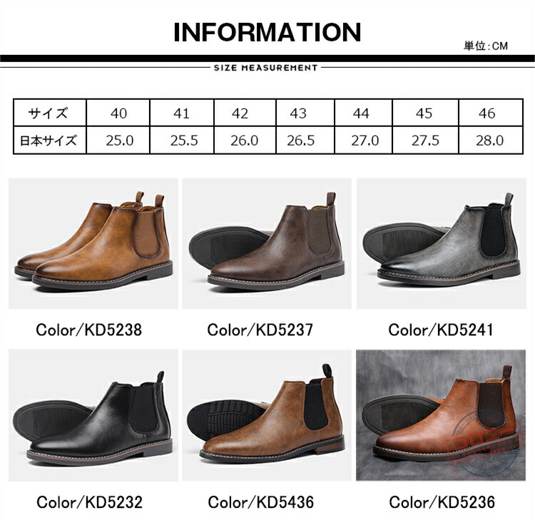 サイドゴアブーツ メンズ 革靴 カジュ メンズ靴 ブーツ サイドゴア 豊富 KD5238 KD5237 KD5241 KD5232 KD5236 KD5436 40(25.0CM) 41(25.5CM) 42(26.0CM) 43(26.5CM) 44(27.0CM) 45(27.5CM) 46(28.0CM)