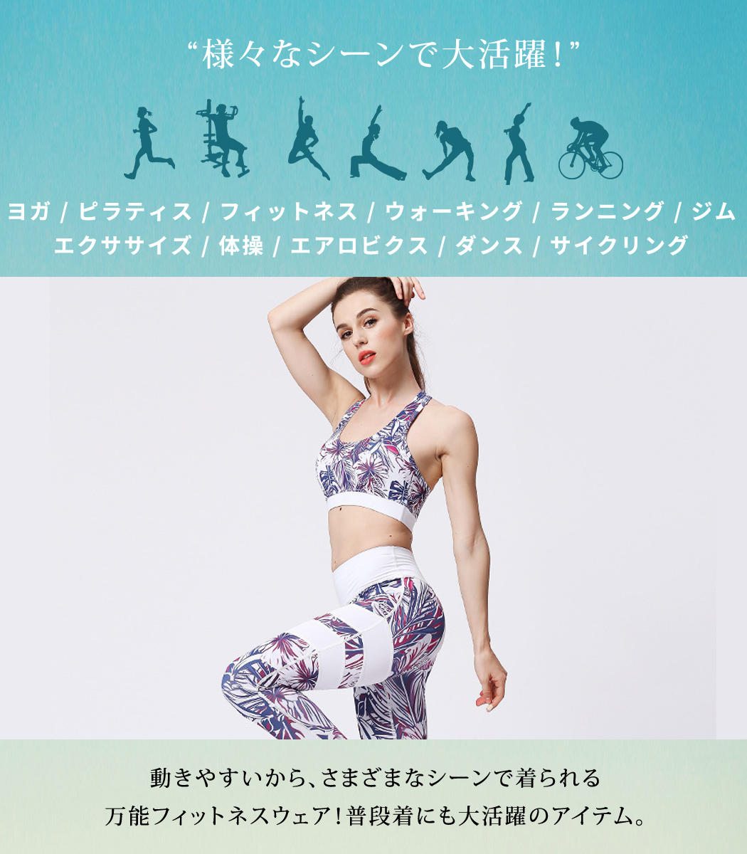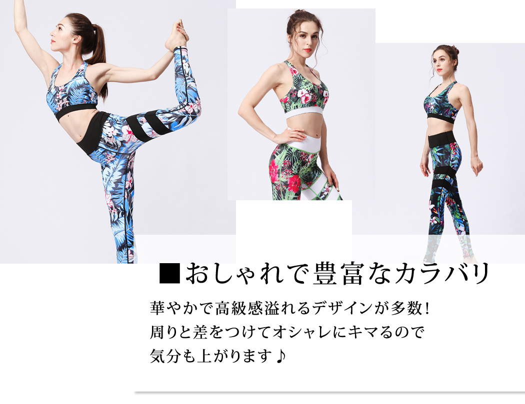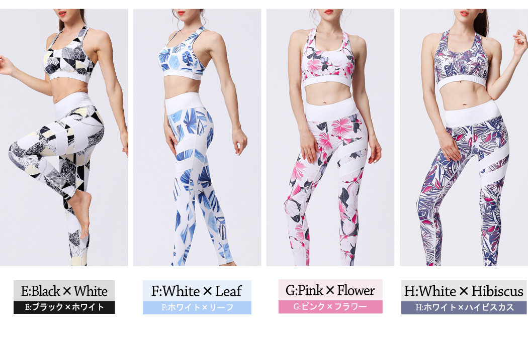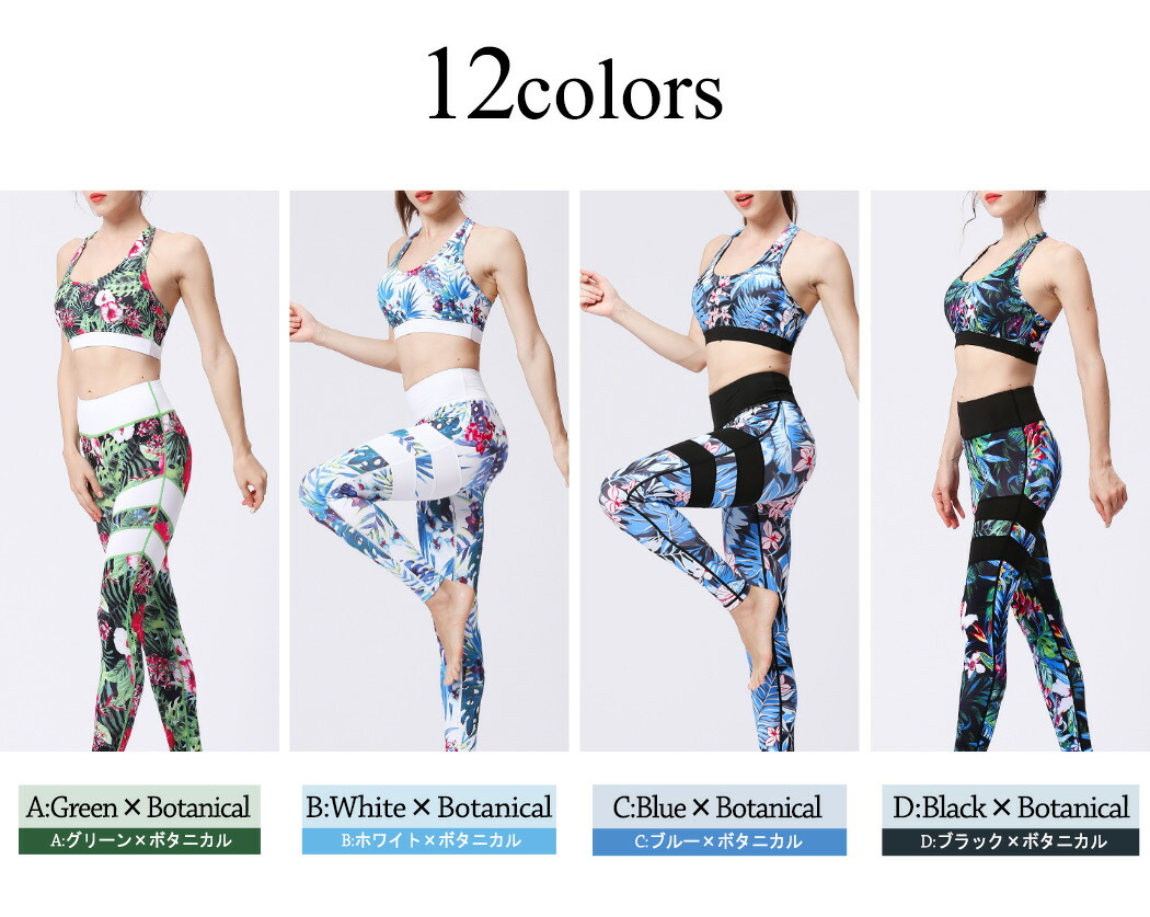 ヨガウェア 上下セット レディース カ スポーツ アウトドア 続々入荷中 S M L XL A:グリーン×ボタニカル B:ホワイト×ボタニカル C:ブルー×ボタニカル D:ブラック×ボタニカル E:ブラック×ホワイト F:ホワイト×リーフ G:ピンク×フラワー H:ホワイト×ハイビスカス I:レッド×ペイズリー J:ブラック×フラワー K:ブラック×ボタニカル L:ブラック×ボタニカル