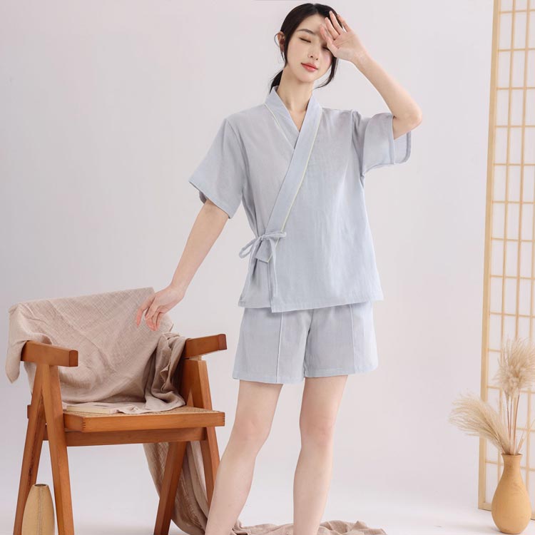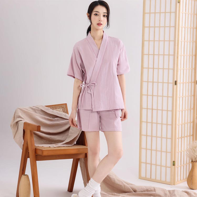 レディース パジャマ 綿 甚平 セット 和服 部屋着 期間限定ポイントUP! パープル ピンク ライトブルー M L XL