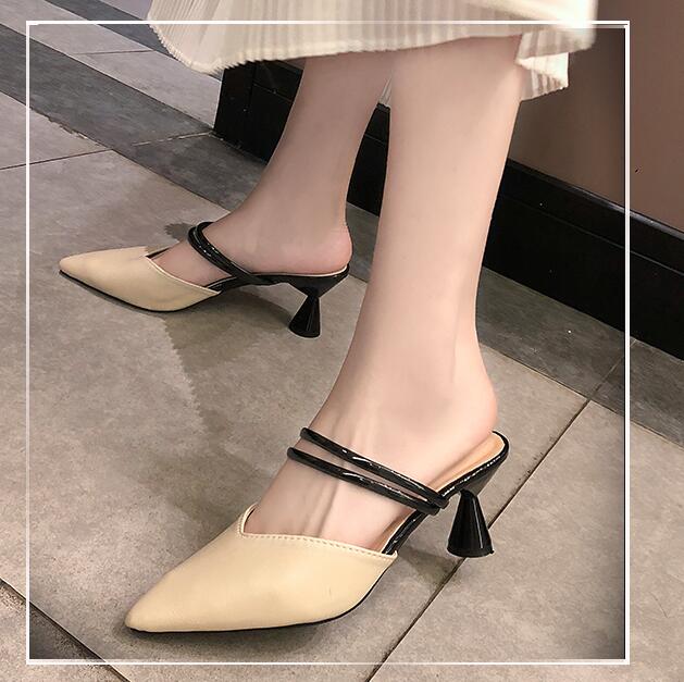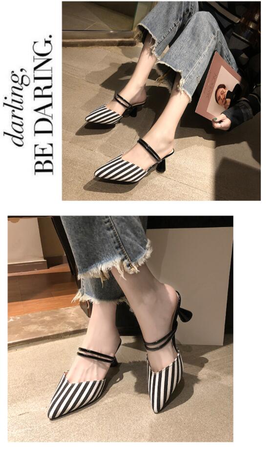 ミュール7cmヒールハイヒールミュール レディース靴 ミュール 特集 22.5cm 23cm 23.5cm 24cm 24.5cm ブラック ベージュ ボーター柄