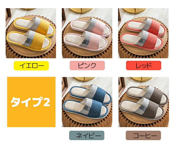 夏用 スリッパ 室内用 麻 リネン メ 日用品雑貨 文房具 手芸 特集 イエロー(タイプ2) ピンク(タイプ2) レッド(タイプ2) ネイビー(タイプ2) コーヒー(タイプ2) 36-37 38-39 40-41 42-43 44-45