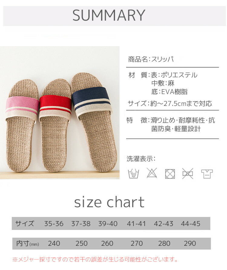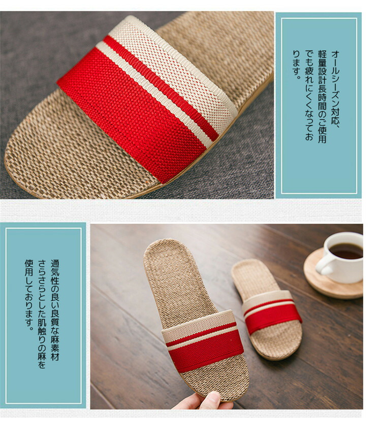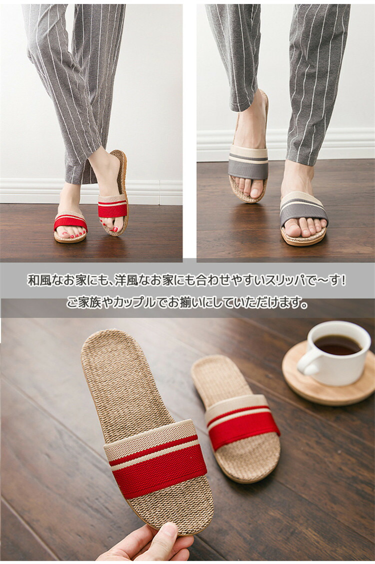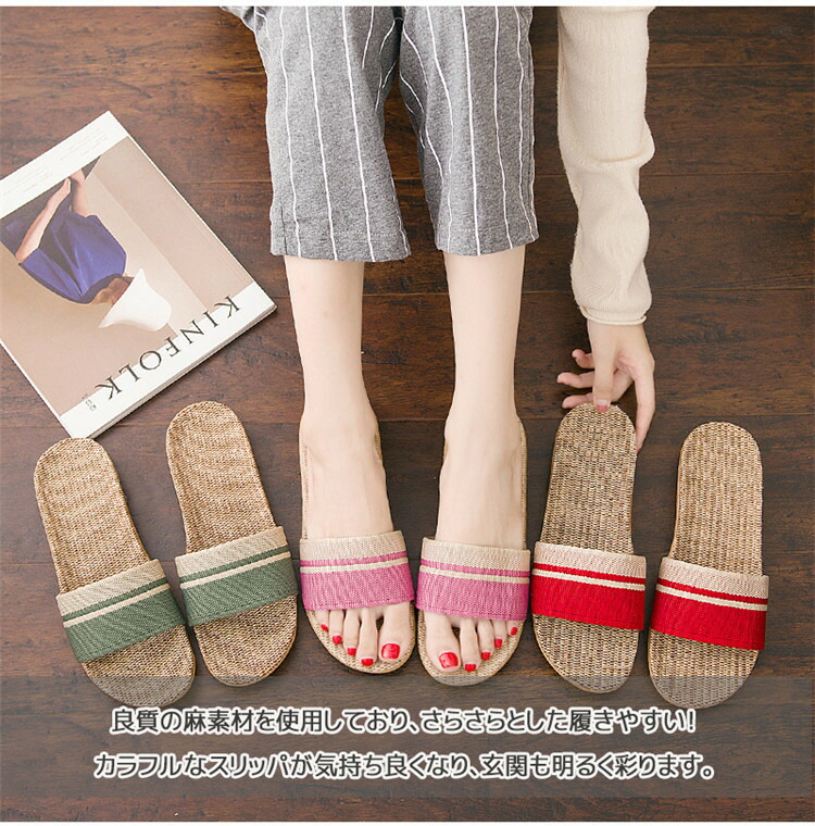 スリッパ 麻素材 夏用 蒸れない 室内 生活雑貨 スリッパ ルームシューズ スリッパ 通販 レッド ピンク グリーン グレー #35-36 #37-38 #39-40 #40-41 #42-43 #44-45