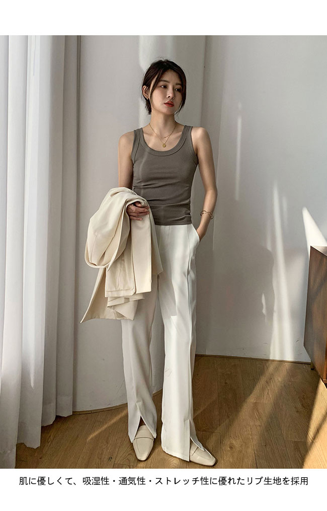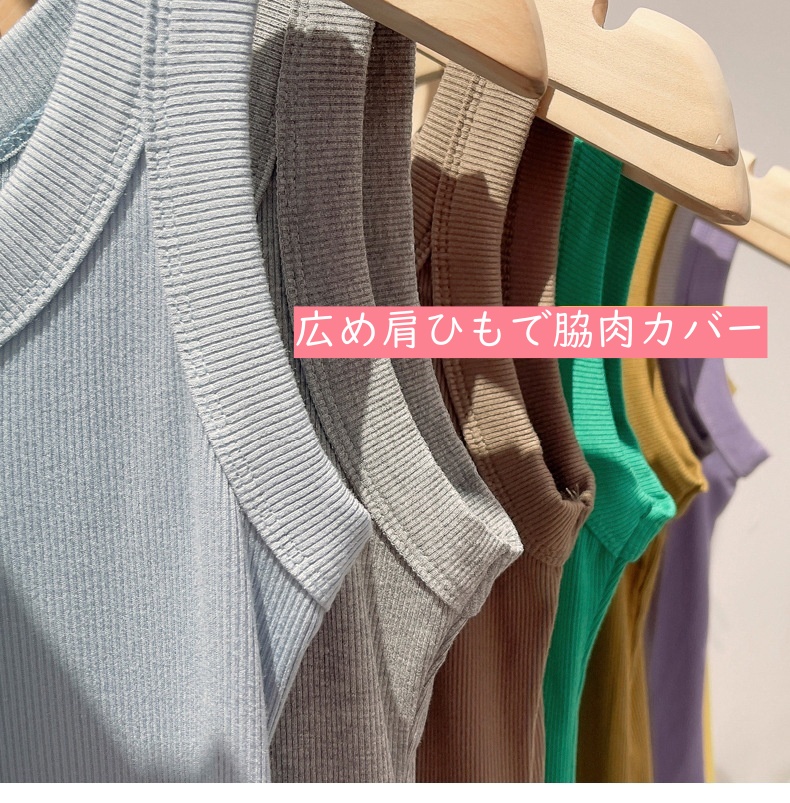 タンクトップ レディース リブ トップ レディースファッション 豊富 M L XL 2XL ホワイト ライトイエロー パープル グリーン ブラック カーキグリーン ダークグレー ライトグレー ダークイエロー