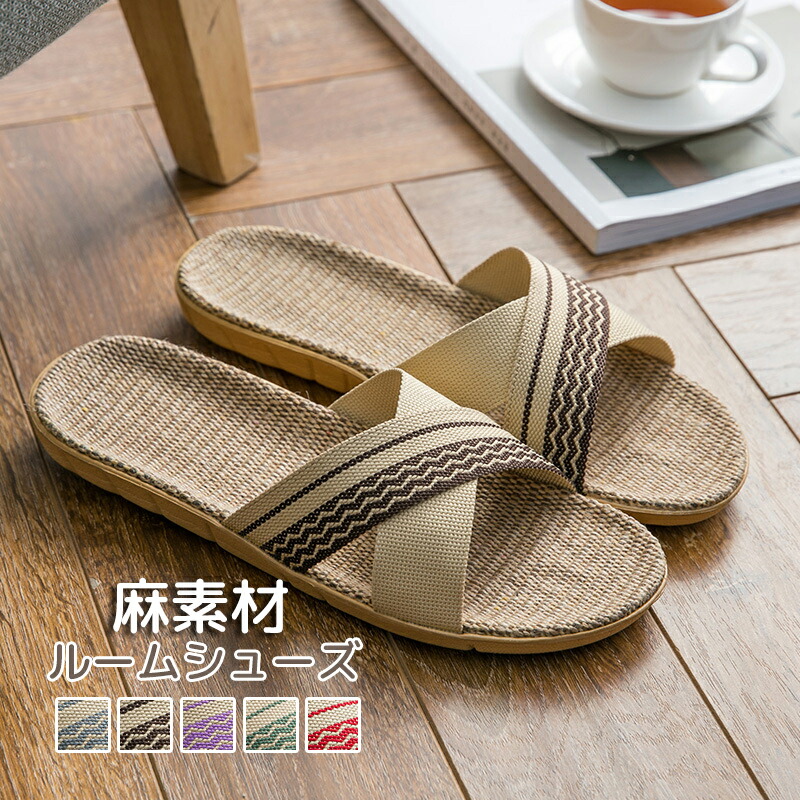 ルームシューズ 麻素材 夏 部屋着スリ 日用品雑貨 文房具 手芸 特集 レッド パープル グリーン グレー ブラウン S-(22.5-23cm) M-(23.5-24cm) L-(24.5-25cm) XL-(25.5-26cm) 2XL-(26.5-27cm) 3XL-(27.5-28cm)