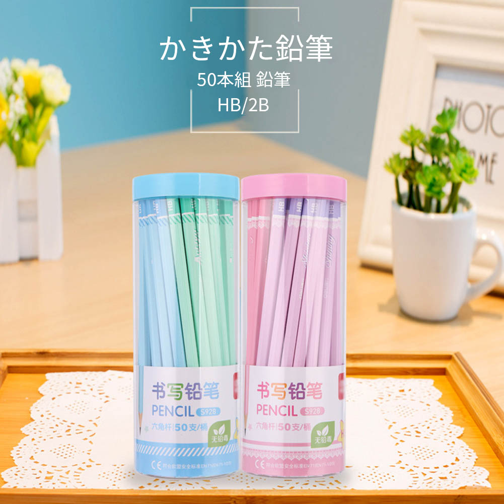 かきかた鉛筆50本組 鉛筆 HB 2B 日用品雑貨 文房具 手芸 49%Off ブルー ピンク HB 2B