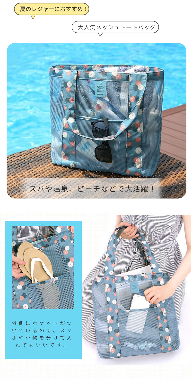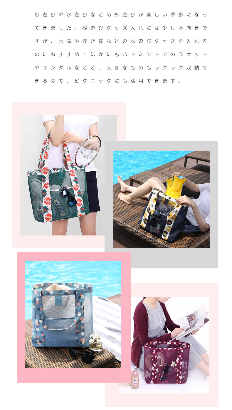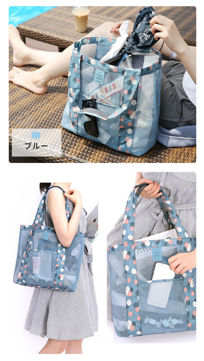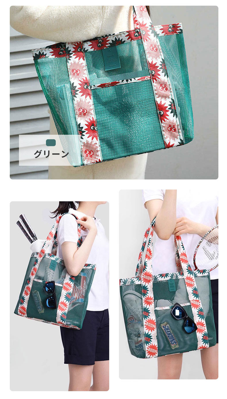 メッシュバッグ 大容量 砂場 海 プー バッグ 小物 ブランド雑貨 続々登場 ブルー グリーン ワインレッド ブラック