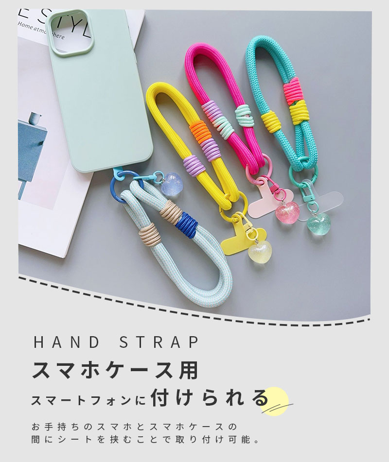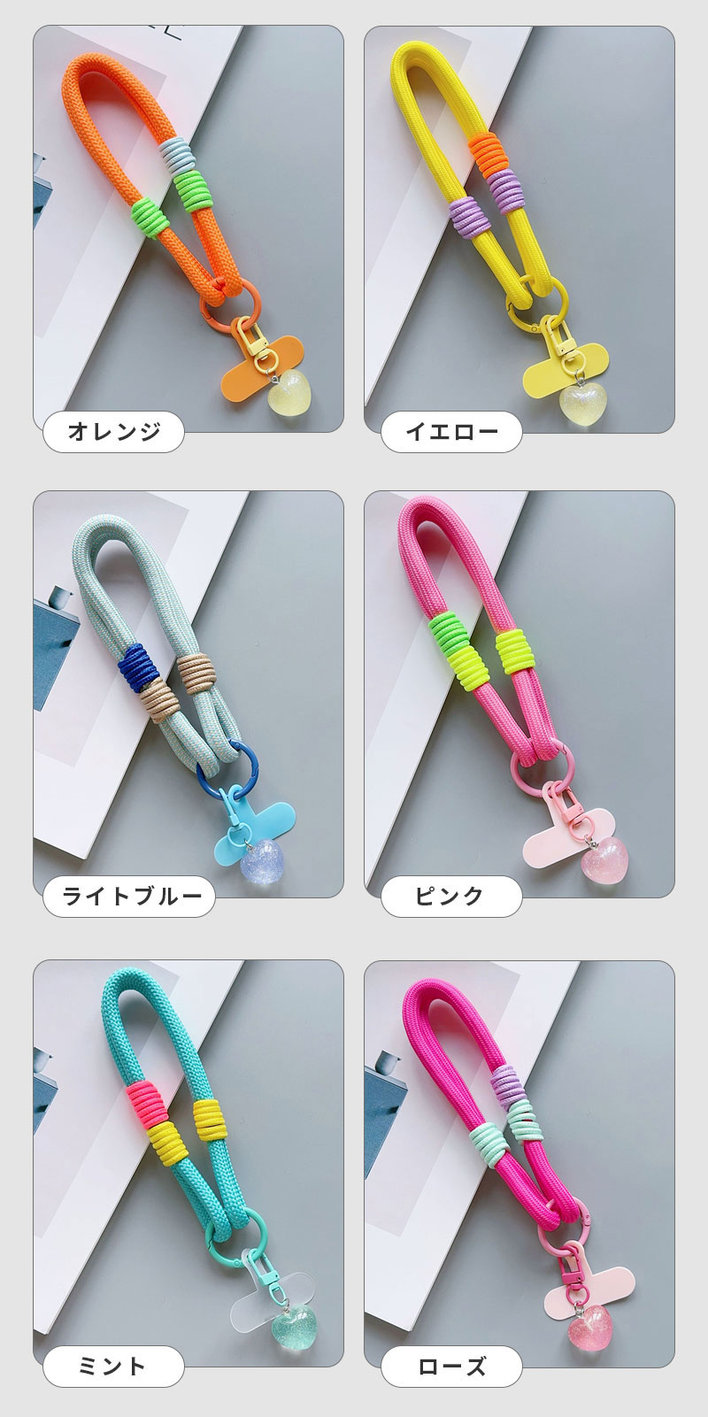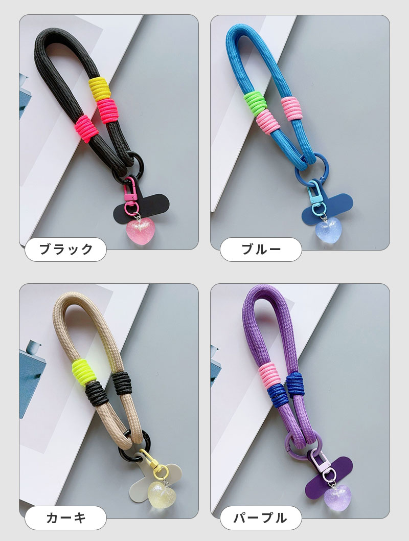 スマホ用ハンドストラップ iPhone スマートフォン 携帯電話用アクセサリー ストラップ マスコット 新作 ブラック ブルー カーキ パープル オレンジ イエロー ライトブルー ピンク ミント ローズ