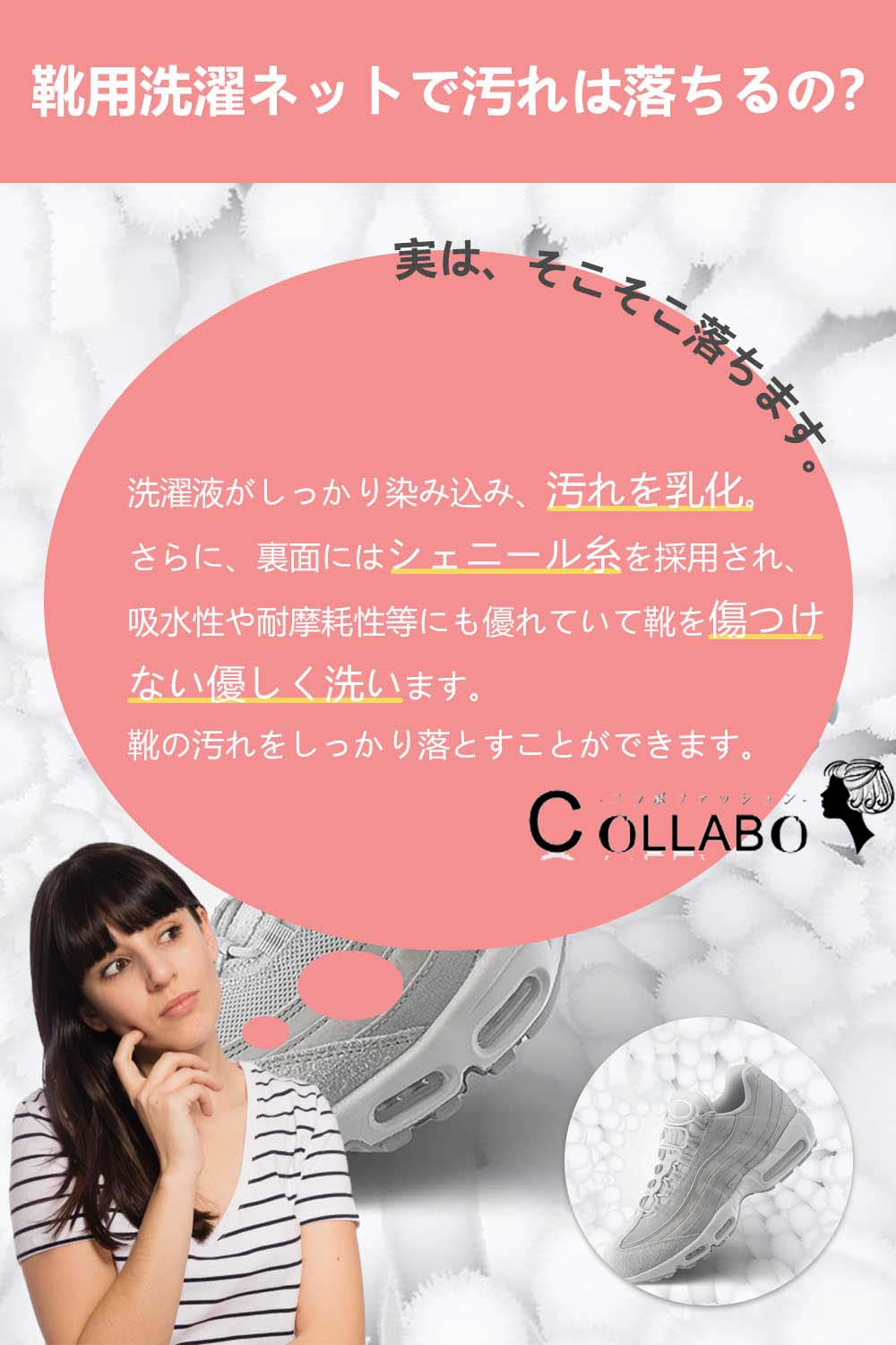*白い靴は通常通りにクリーニングできますが、クリーニングには冷水を使用してください。