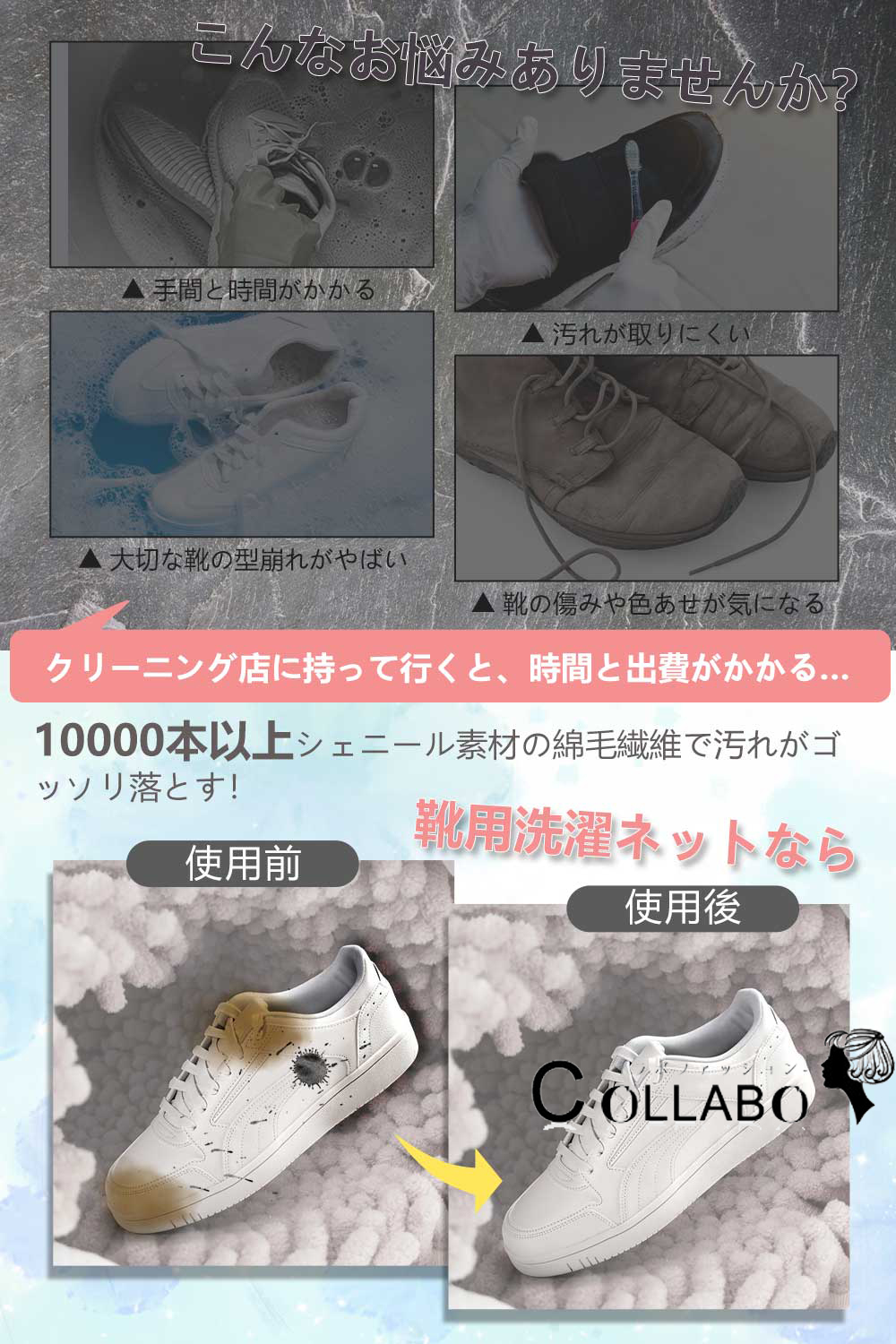 【高品質の素材】: 靴 洗濯機 は、高品質な繊維素材を使用し、細部と品質にこだわって作られています。内部は、10000本以上の毛羽繊維を使用し繊維は細かく柔らかく、靴の表面を優しく清潔に保ち、すべての靴が独特の輝きを放つようにします。