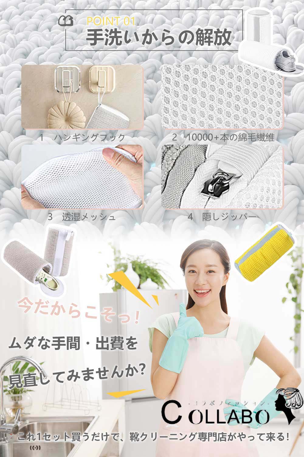 【高品質の素材】: 靴 洗濯機 は、高品質な繊維素材を使用し、細部と品質にこだわって作られています。内部は、10000本以上の毛羽繊維を使用し繊維は細かく柔らかく、靴の表面を優しく清潔に保ち、すべての靴が独特の輝きを放つようにします。