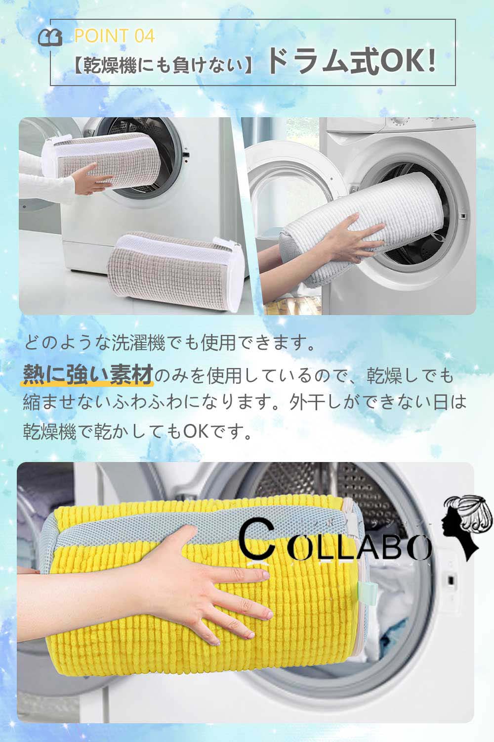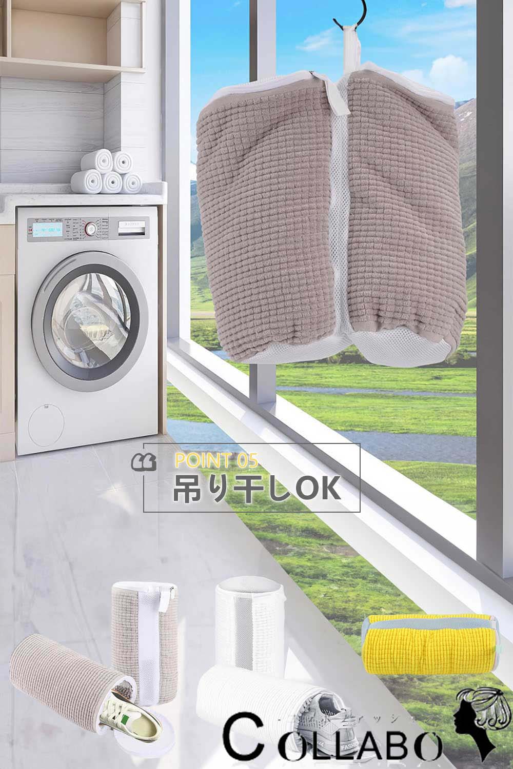 *靴を洗った後は、靴を取り出して洗濯袋を自然乾燥させてください。高温での乾燥に一緒に入れないでください。