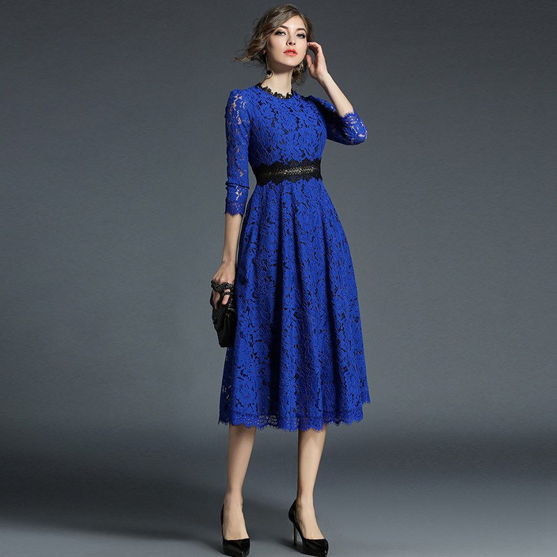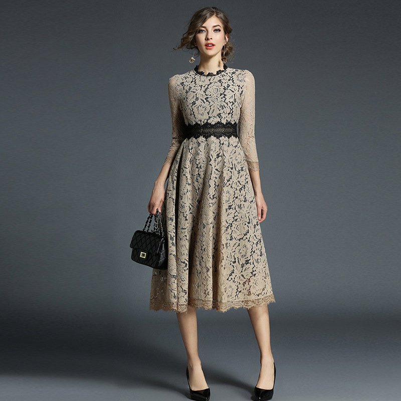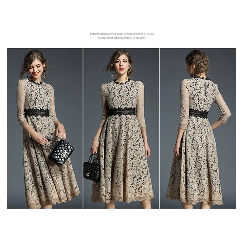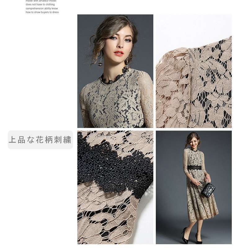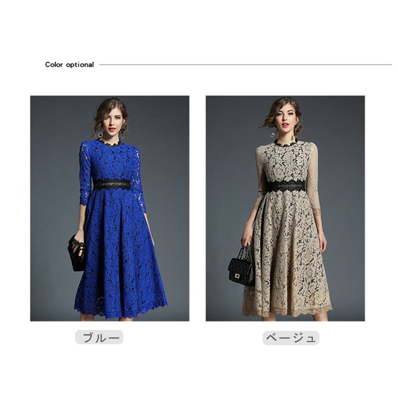 パーティードレス ミモレ丈 総レース ドレス 42%Off ベージュ ブルー S M L XL XXL