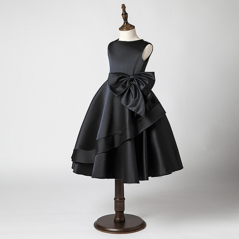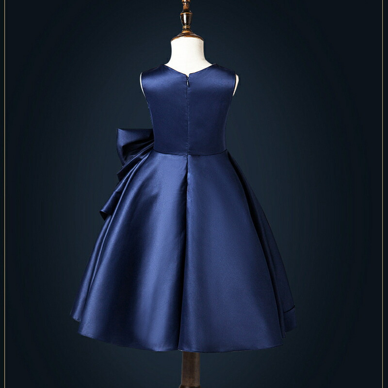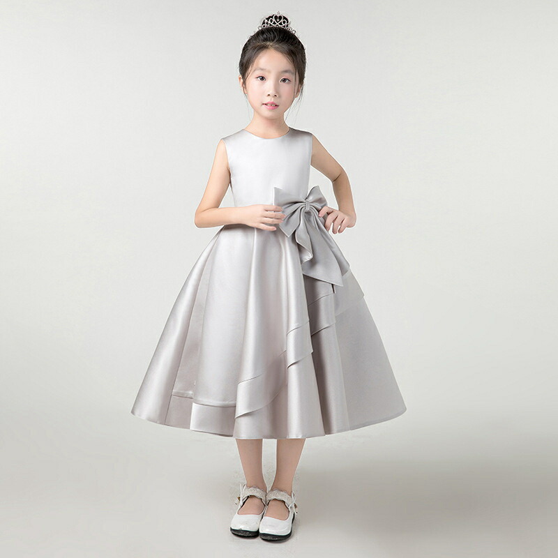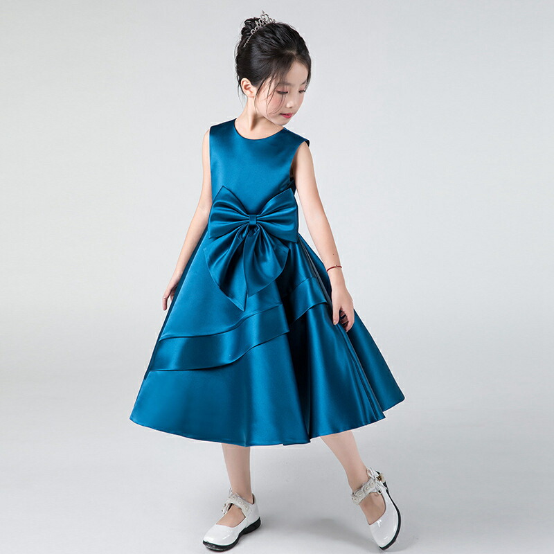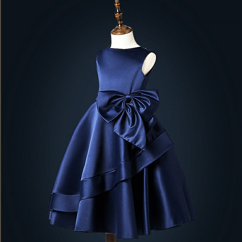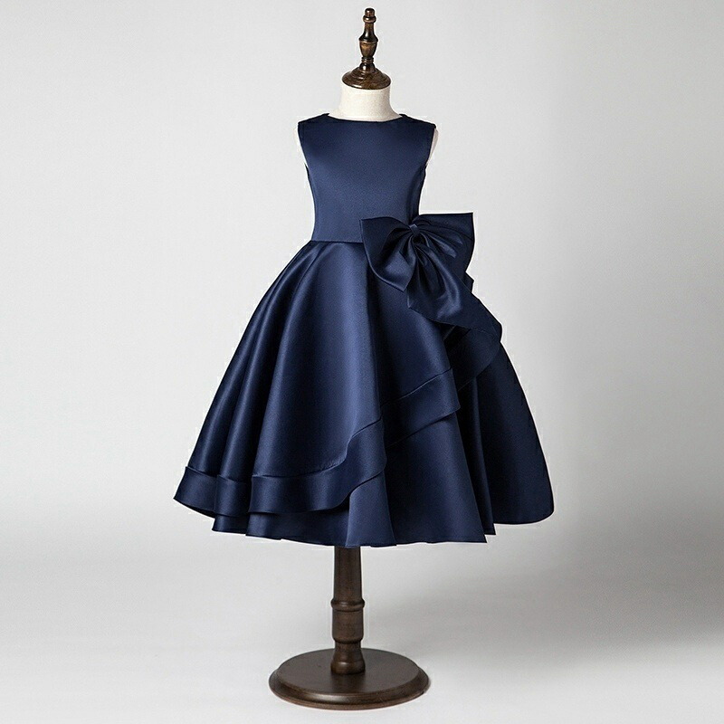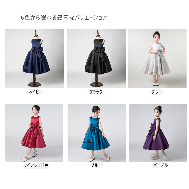子供ドレス 発表会 ミモレ丈 リボン付 キッズ ドレス 続々入荷中 ネイビー ブラック グレー ワインレッド色 ブルー パープル 100cm 110cm 120cm 130cm 140cm 150cm 160cm 170cm