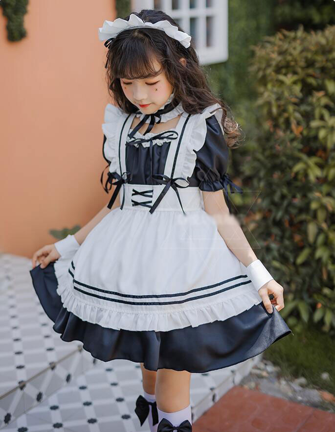 子供メイド服 子どもワンピース 女の子コスチューム キッズ半袖ワンピ メイドコスプレ 定番 可愛いコスチューム コスプレ衣装