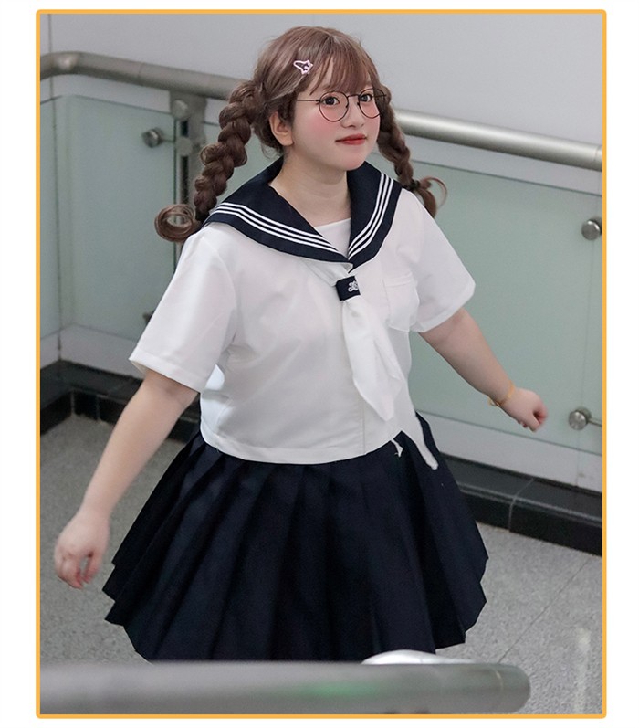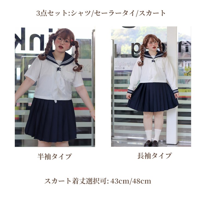 セーラー服 上下セット レディース 大きいサイズ 制服風 コスプレ JK風 コスチューム 半袖 長袖 3点セット 2L~8L 選べるスカート丈43cm 48cm 学園祭 イベント 撮影 仮装 文化祭