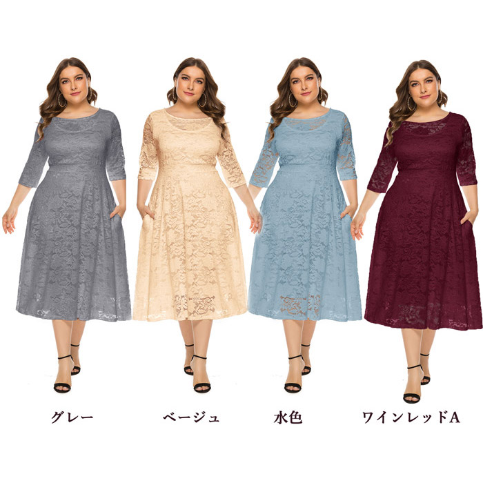 ぽっちゃり ドレス 大きいサイズ レデ ドレス 42%Off ベージュ グレー 水色 ワインレッドA ホワイト ブルー ピンク ブラック パープル ネイビー ワインレッドB グリーン 2L(XL) 3L(2XL) 4L(3XL) 5L(4XL) 6L(5XL) 7L(6XL) 8L(7XL) 9L(10XL)