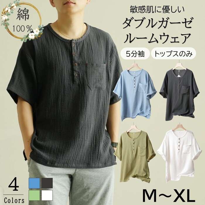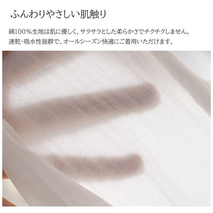 吸汗 敏感肌 二重ガーゼ やわ ふんわ インナー 下着 ナイトウエア 期間限定割引クーポン ブルー グレー グリーン ホワイト M L XL