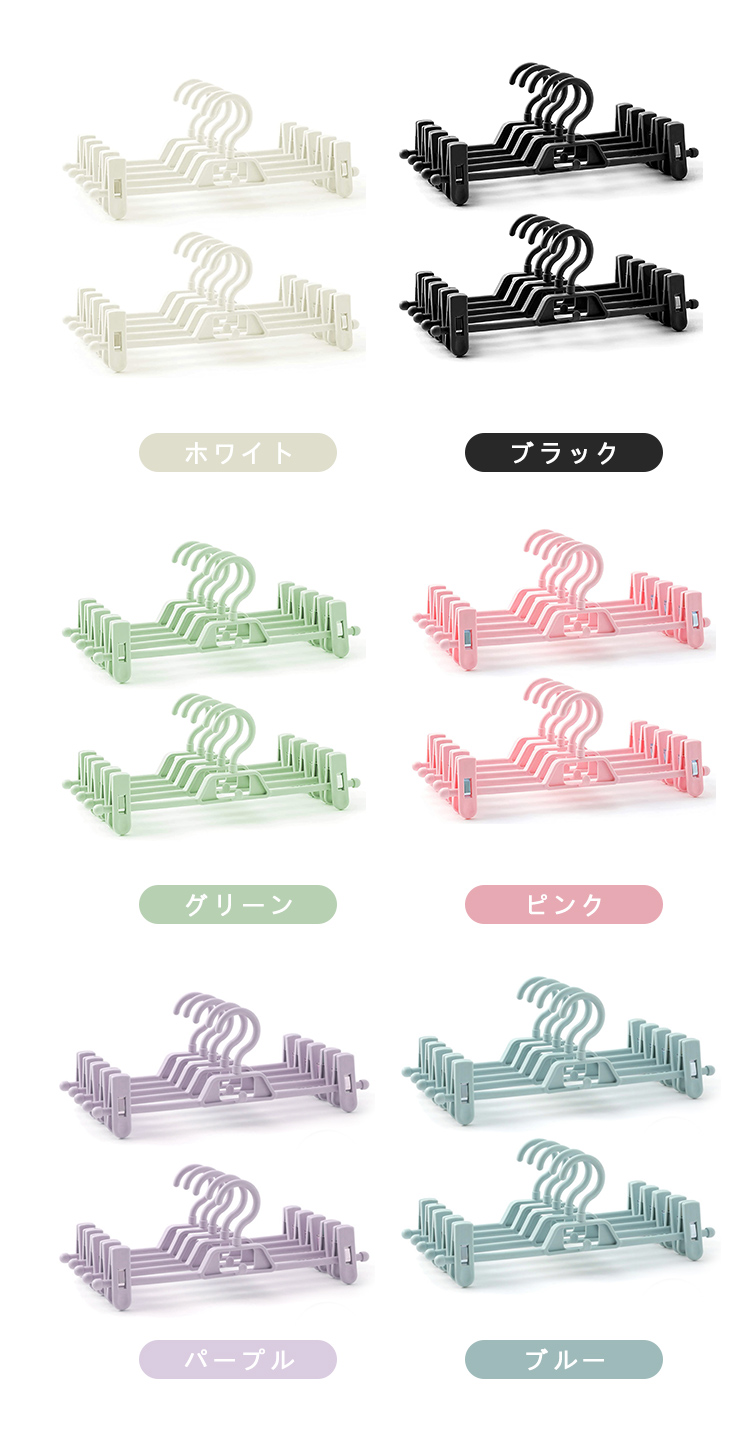 クリップ ハンガー ズボンハンガー ス 10本セット 20本セット 30本セット ブラック ホワイト グリーン ピンク ブルー パープル