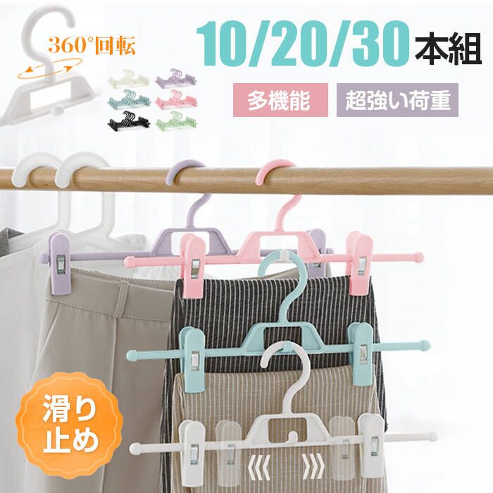 クリップ ハンガー ズボンハンガー スカートハンガー 10本組 20本組 30本組 洗濯 滑り止め クロゼット収納 省スペース ハンガークリップ 360度回転 ズボン ハ シワ防止