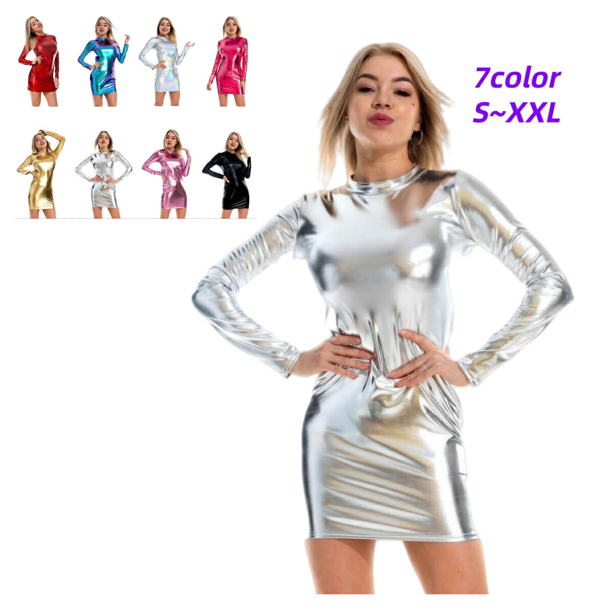 レディースダンス衣装 レザードレス PUドレス ストレッチ 細身ドレス スリム タイトドレス 光沢あり DS 舞台演出服 ステージ衣装 欧米風 セクシーダンス衣装 ハロウィン 文化祭 8色