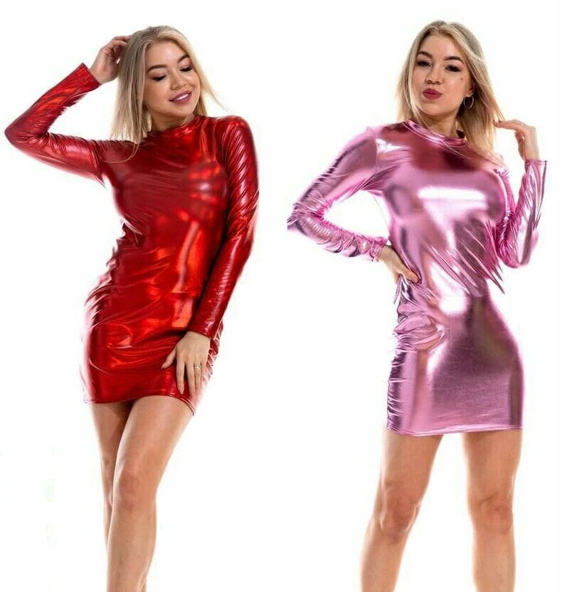 レザードレス ワンピース レディースダ レディースファッション 42%Off S M L XL XXL イエロー シルバー1 シルバー2 レッド ブラック ブルー ローズ ピンク