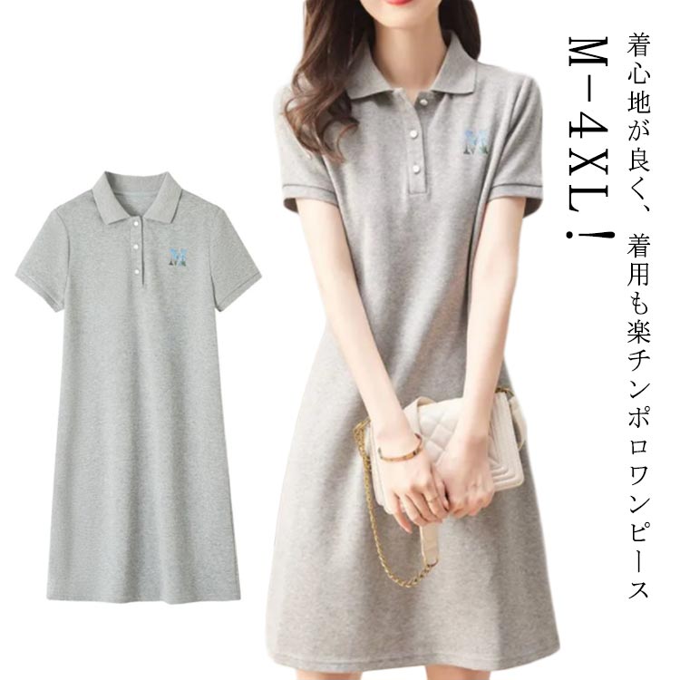 ポロワンピース ワンピース 半袖 レデ ワンピース 期間限定割引クーポン M L XL 2XL 3XL 4XL